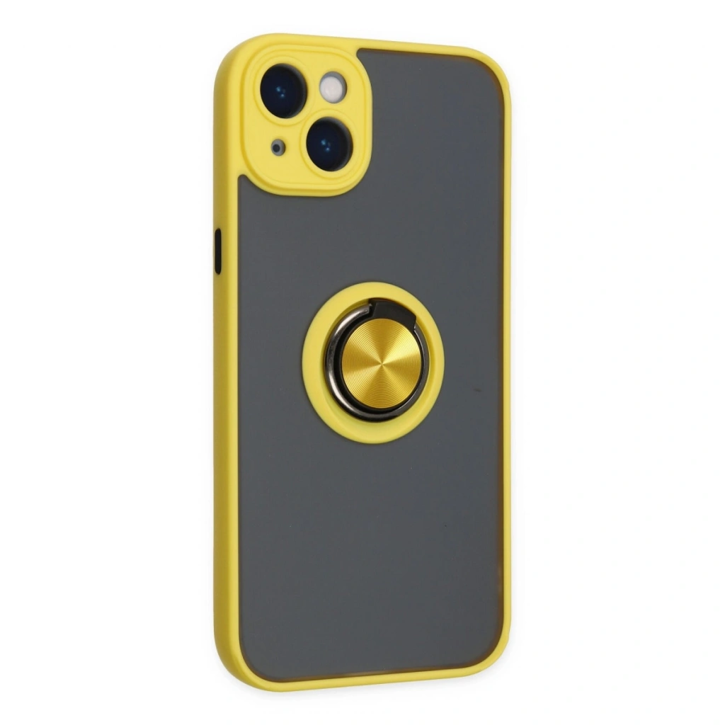 • İphone 14 Kılıf Montreal Yüzüklü Silikon Kapak - Sarı