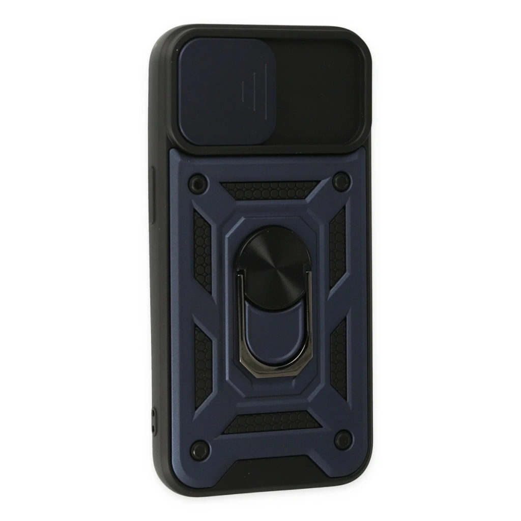• İphone 14 Kılıf Pars Lens Yüzüklü Silikon - Lacivert