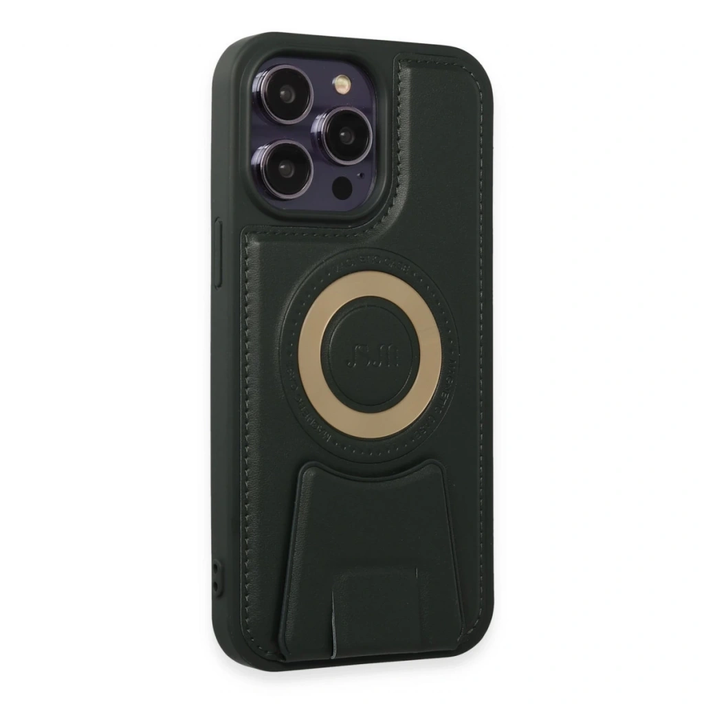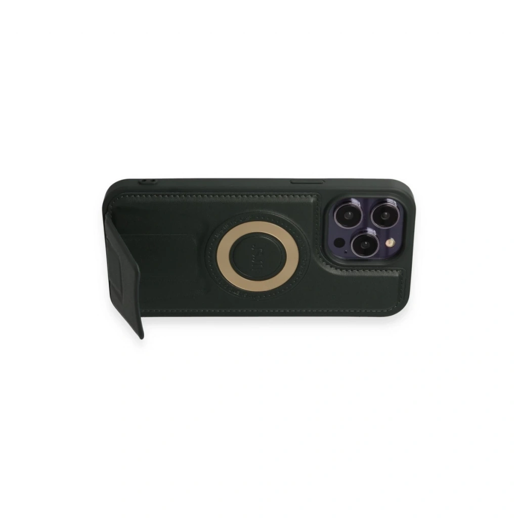 • İphone 14 Pro Kılıf Merkür Magneticsafe Standlı Kapak - Koyu Yeşil