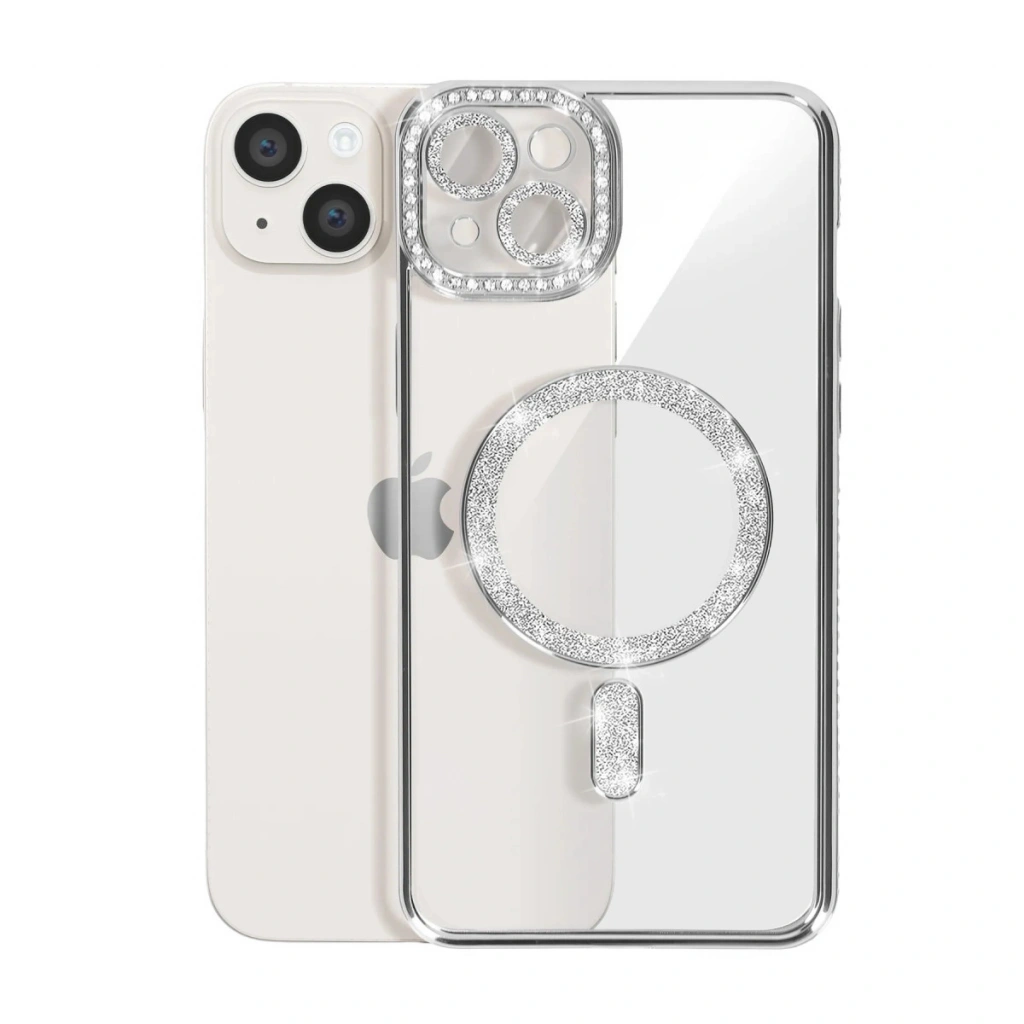 • İphone 15 Kılıf Joke Simli Magneticsafe Kılıf - Gümüş