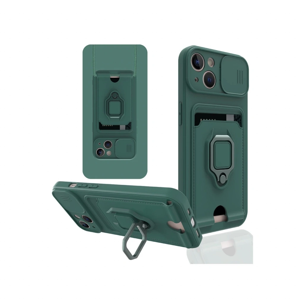 • İphone 15 Kılıf Zuma Kartvizitli Yüzüklü Silikon - Yeşil
