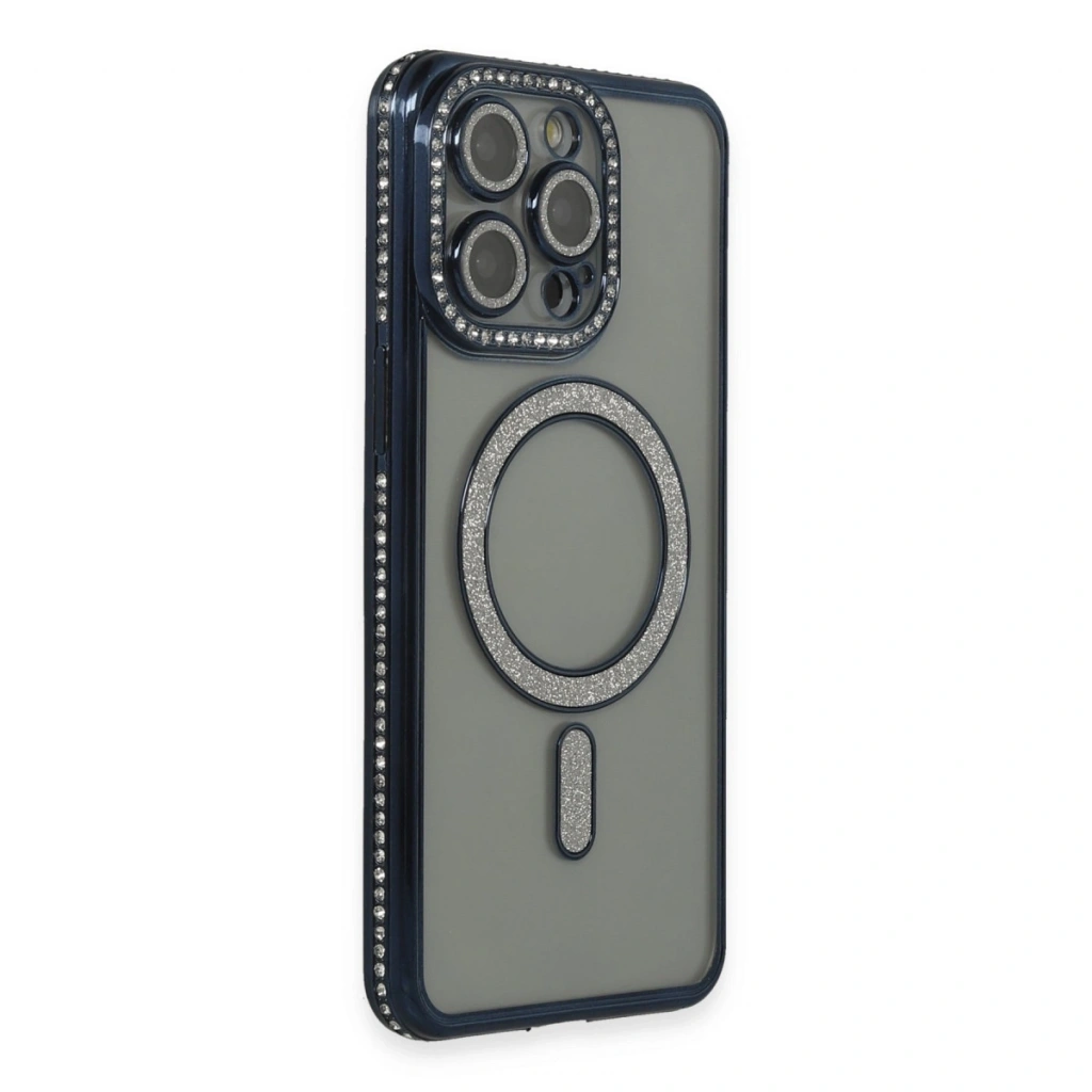 • İphone 15 Pro Kılıf Joke Simli Magneticsafe Kılıf - Lacivert