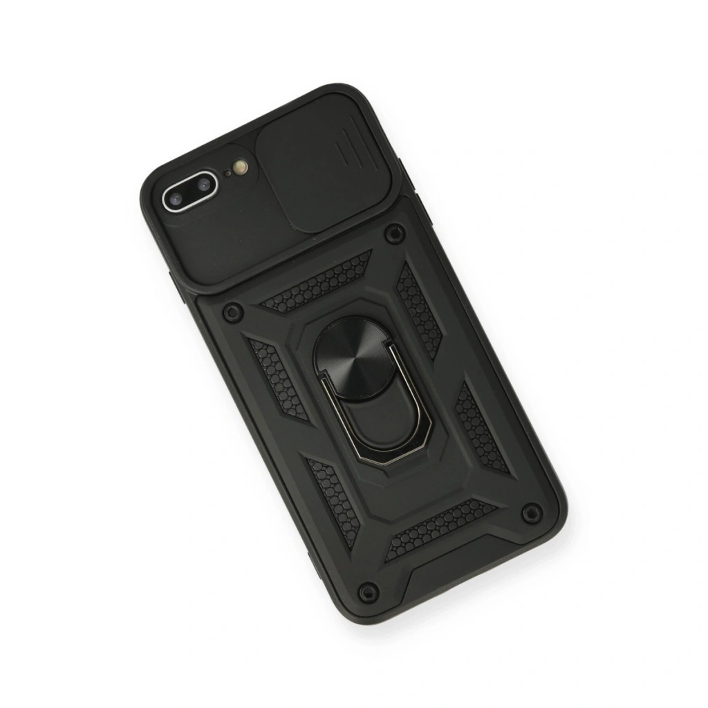 İphone 7 Plus Kılıf Pars Lens Yüzüklü Silikon - Siyah
