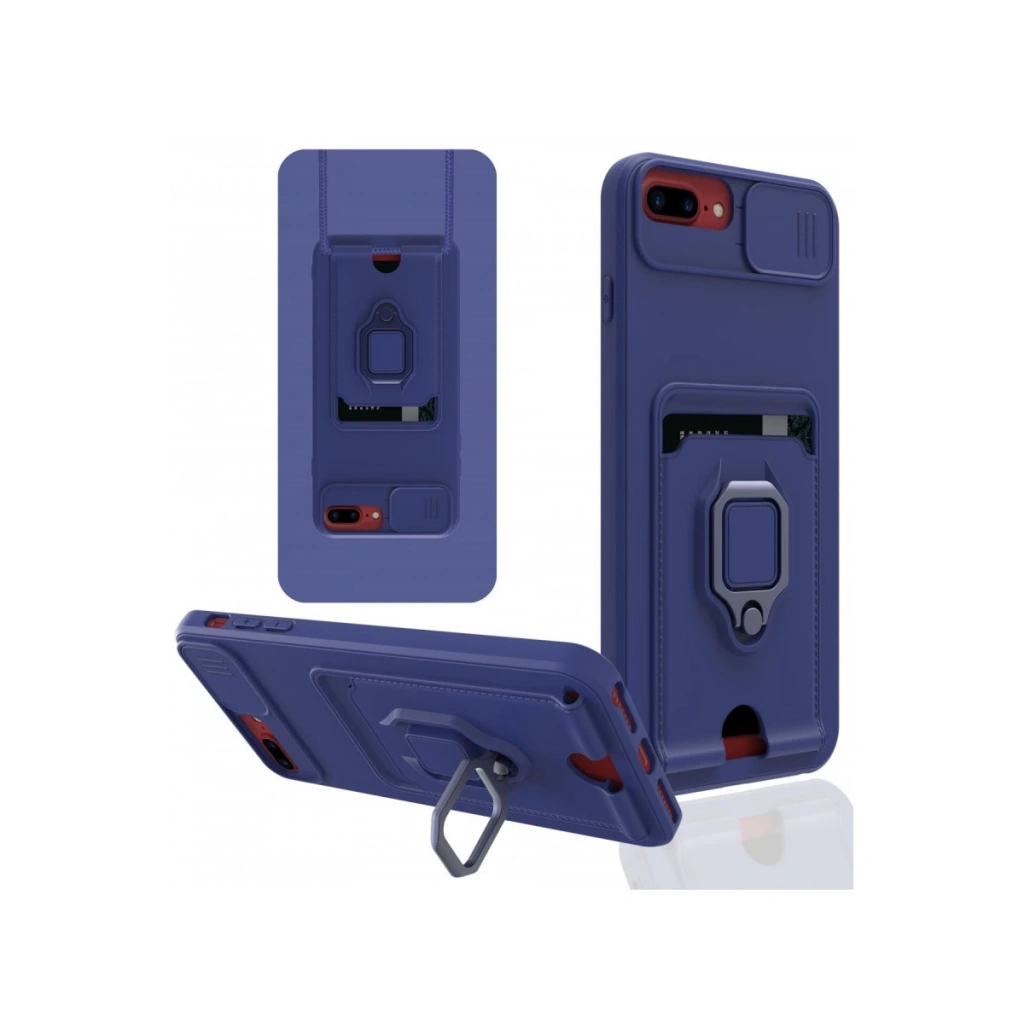 İphone 7 Plus Kılıf Zuma Kartvizitli Yüzüklü Silikon - Lacivert