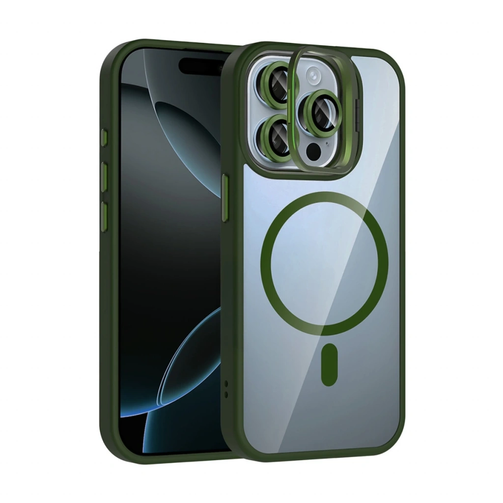 • Joko Apple İphone 15 Pro Max Remim Lensli Magsafe Standlı Kapak - Koyu Yeşil