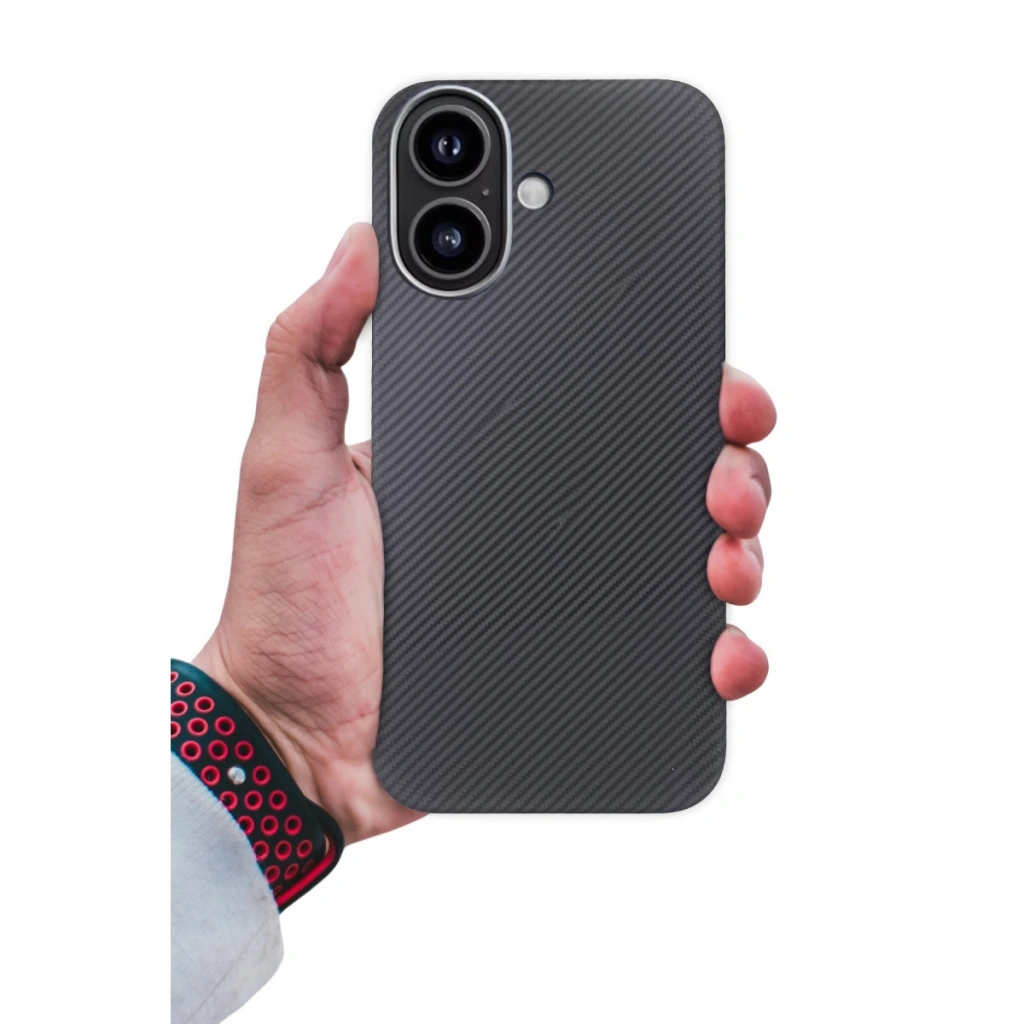 Sağlam, lüks ve hafif bir kılıftır sert plastik ve metal kamera çerçevesiyle tam koruma sağlar. Şık karbon fiber tasarımı modern bir görünüm sağlarken yerleşik MagSafe uyumluluğu da aksesuarların kolay şarj edilmesini ve bağlanmasını sağlar.