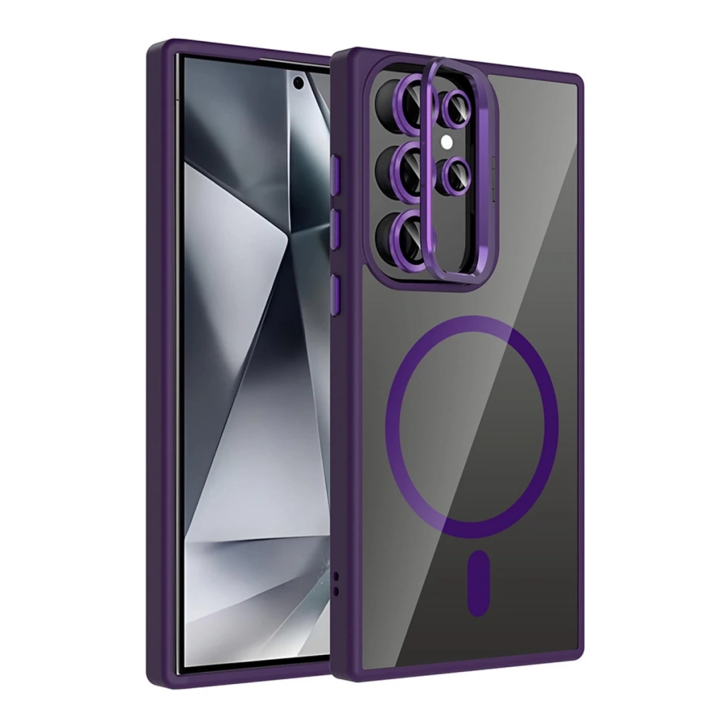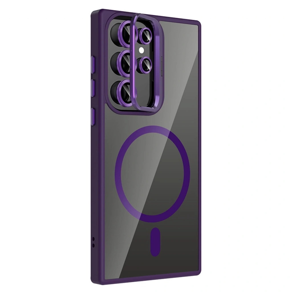 Joko Samsung Galaxy S23 Ultra Remim Lensli Magsafe Standlı Kapak - Derin Mor