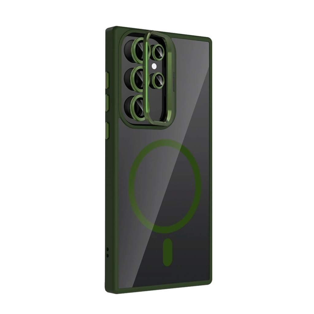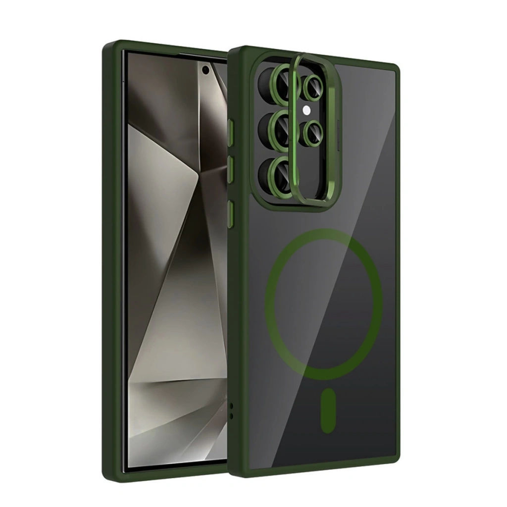 • Joko Samsung Galaxy S23 Ultra Remim Lensli Magsafe Standlı Kapak - Koyu Yeşil