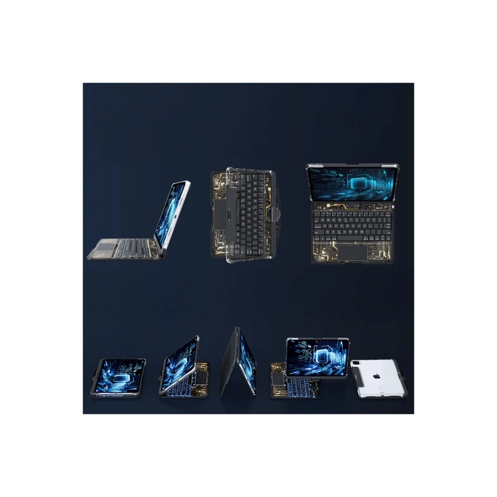 Gelişmiş esneklik, ister iş ister eğlence için mükemmel görüntüleme açıları sağlar. 180° ve 360° döner tasarımı sayesinde kılıf, stand olarak kullanılabilir veya tamamen kapanarak bir koruyucu kılıf görevi görebilir.Açıkken klavye modu, kapalıyken koruma modu ve dönerken stand modu arasında kolay geçiş yapabilirsiniz.