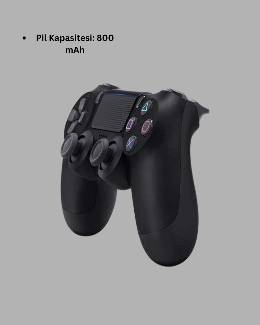 Kablosuz oyun kolu, konsol oyunlarının keyfini sınırsız hale getiren modern bir kontrol cihazıdır. Gelişmiş bağlantı sistemi sayesinde PS4 konsollarıyla uyumlu çalışır.Çift titreşimli motor sistemi, oyunlarda maksimum gerçekçilik sağlar. Araç sürüşlerinde yol titreşimini, savaşlarda silah tepkilerini hissedersiniz. Bu sayede oyunlar sadece görsel değil, fiziksel olarak da deneyimlenir.Kablosuz kullanım, kablo sınırlamasını ortadan kaldırır. 800 mAh bataryası, uzun süreli oyun maratonlarında dayanıklı performans sunar. USB bağlantısı üzerinden hızlı şarj imkanı bulunur.Ergonomik tutuş, yumuşak dokulu yüzey ve kaymaz tasarım, uzun süreli kullanımda rahatlık sağlar. Tuş tepkileri net, analog kollar duyarlıdır; rekabetçi oyunlarda hız kazandırır.Minimalist siyah rengiyle hem sade hem şık bir görünüme sahiptir. Kompakt ve dayanıklı yapısı, uzun yıllar kullanılabilecek kalitededir.