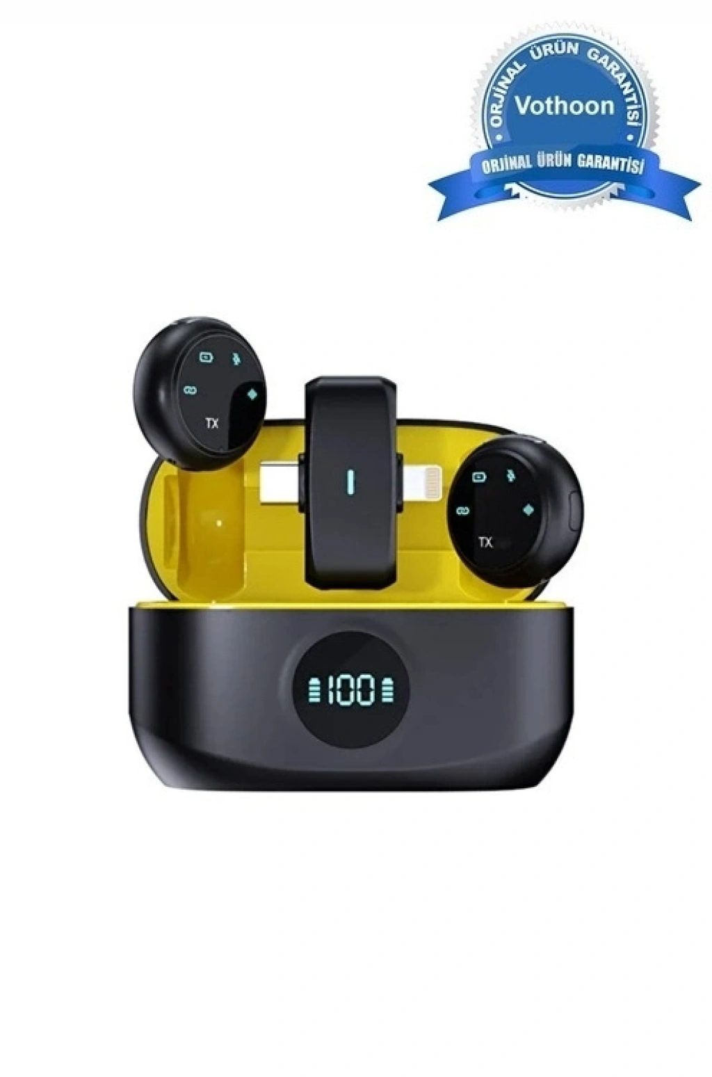 • Kablosuz Profesyonel İkili Yayın Yaka Mikrofonu Şarj Kutu Mıknatıslı Typce Lightning Çıkış Mikrofon
