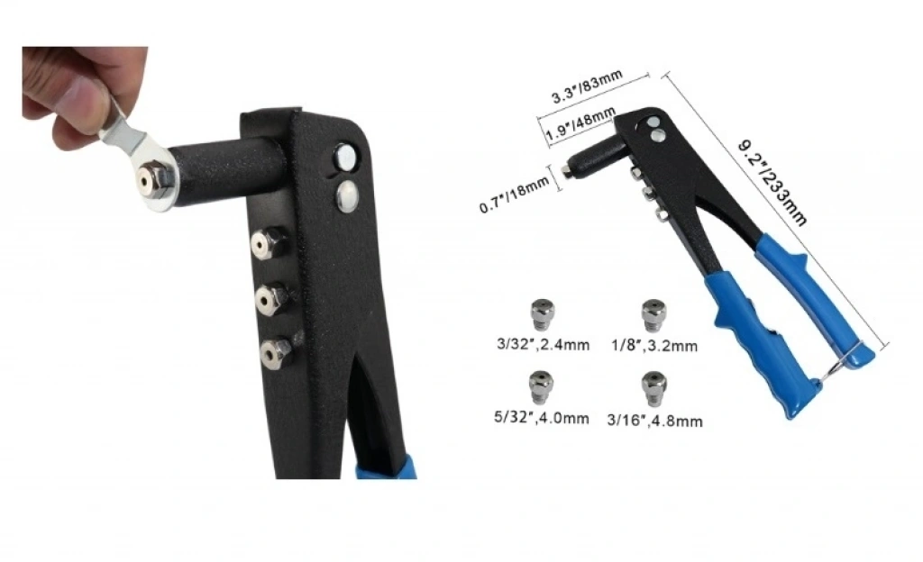 Dört boyutlu döner kafa, 3/32 "( 2.4 mm ),1/8" ( 3.2 mm ),5/32 "( 4 mm ),3/16" ( 4.8 mm ) ile donatın, ve toplam her birinden 10 ar adet olmak üzere 40 adet kör perçin, günlük ihtiyaçlarınızı karşılar.