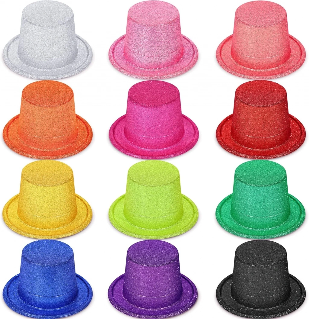 Partilerinize ışıltı katın 12 rengârenk simli silindir şapkadan oluşan bu set, eğlencenizi zirveye taşıyor. Her te kırmızı, mavi, pembe, yeşil, siyah, altın, gümüş ve daha birçok göz alıcı renk bulunur.