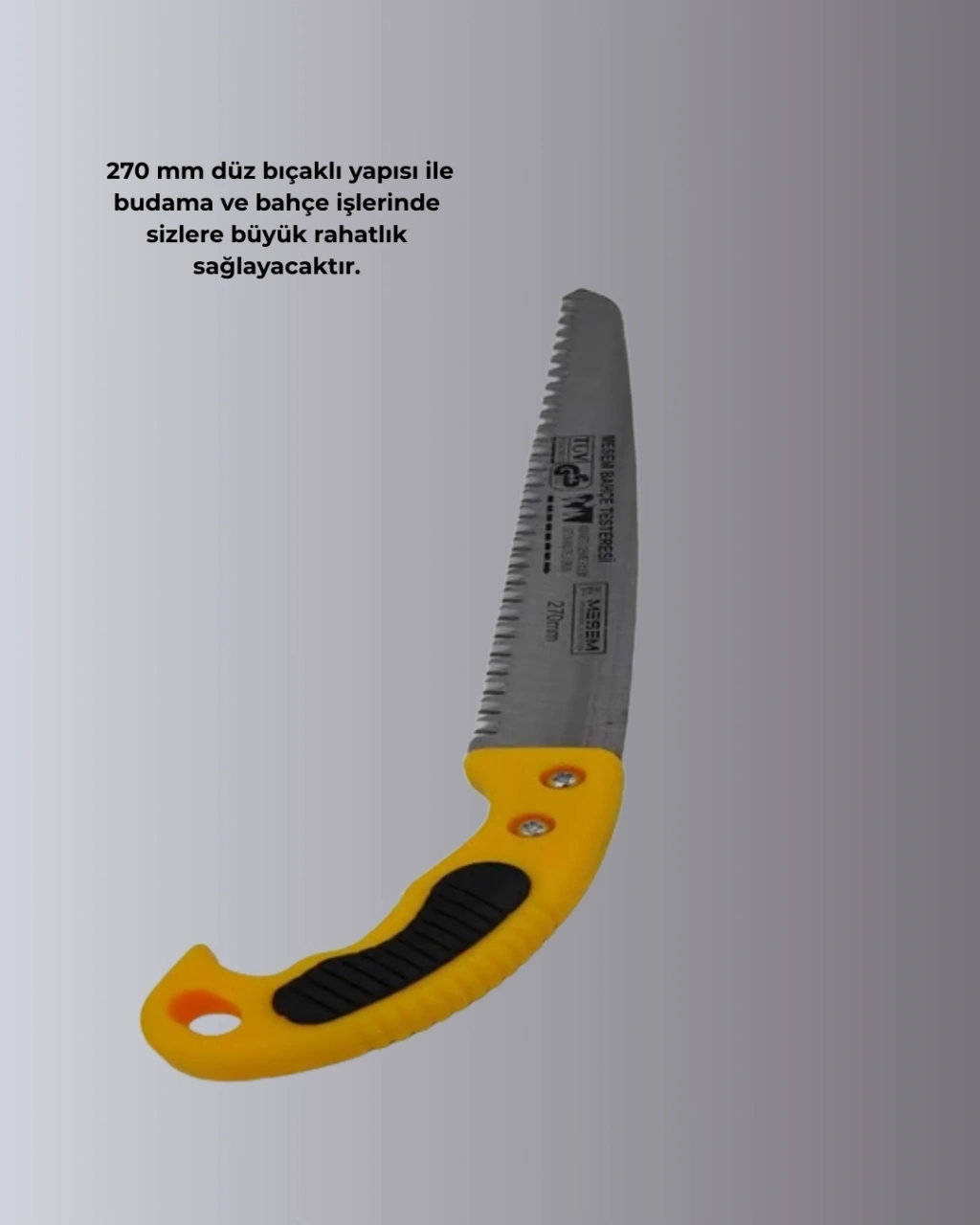 Bahçe bakımında pratik ve ekonomik bir çözüm sunan bu budama testeresi, uygun fiyatlı ve kaliteli yapısıyla öne çıkar. Lazer ile bilenmiş bıçakları sayesinde etkili kesim performansı sunar.Kılıflı tasarımı güvenli kullanım sağlarken, ergonomik tutma sapı ile kolay kontrol imkanı verir. Bahçe işleriyle ilgilenen kullanıcılar için ideal bir el aletidir.