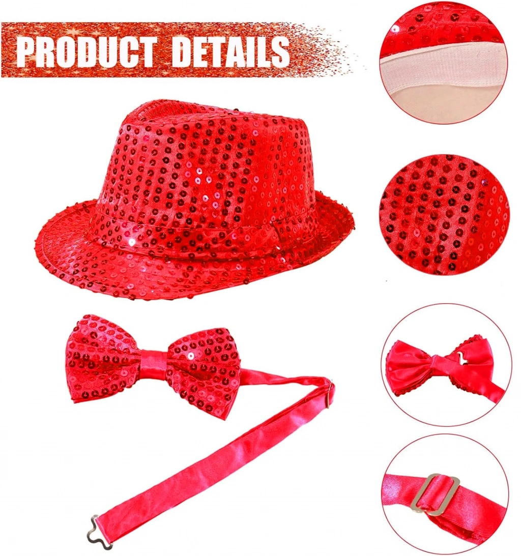 Göz alıcı bir tarz oluşturmak isteyenler için Kırmızı Payetli Şapka ve Papyon Seti tam size göre Işıltılı tasarımıyla özel davetlerden temalı partilere kadar her ortamda fark yaratın.