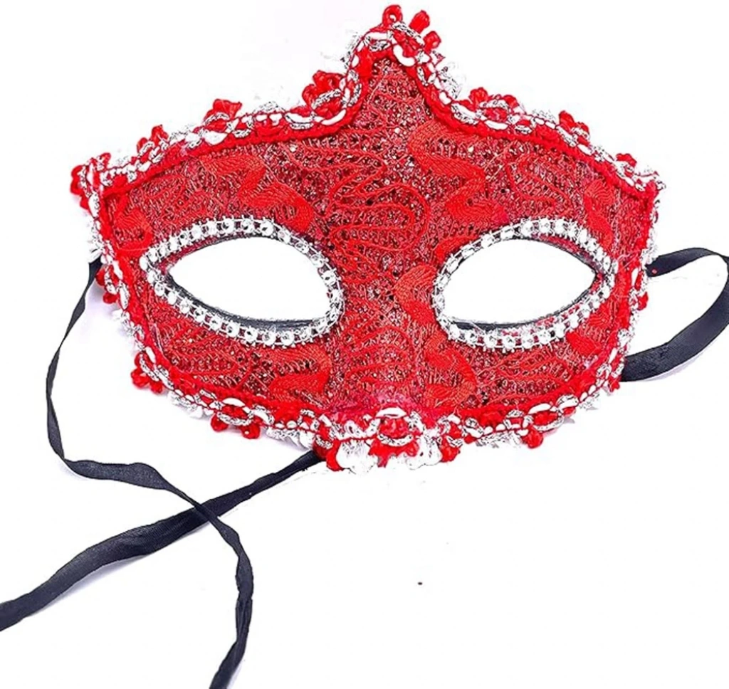 Özel günlerinize zarafet ve gizem katacak bu şık maskeyle göz alıcı bir görünüm elde edin Kırmızı renk, maske tasarımına dikkat çekici bir parlaklık ve cazibe katarken, zarif dantel detayları maskenize feminen bir hava kazandırır. Göz kısmındaki özgün tasarım, hem gizemli hem de etkileyici bir hava yaratır.