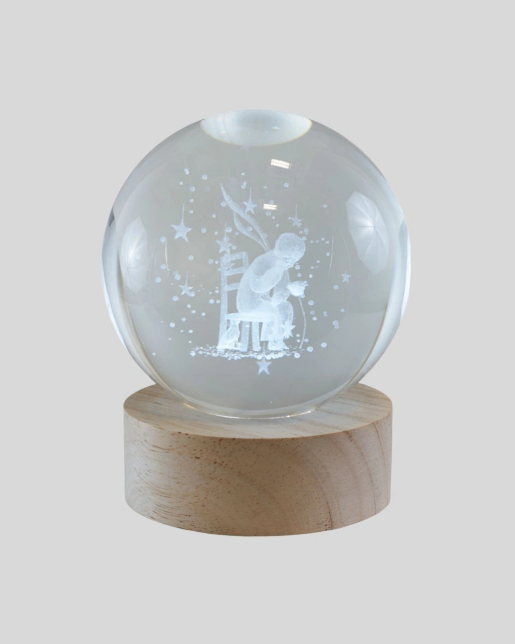 Bu özel tasarım cam küre, uzun ömürlü ve dayanıklı cam malzeme ile üretilmiştir. Ahşap stand, sağlam duruş ve es bütünlük sağlar. LED ışığı açıldığında Küçük Prens figürü büyüleyici bir parlaklık kazanır ve ortamda yumuşak bir ambiyans oluşur. USB ile çalışması sayesinde enerji tasarruflu ve güvenlidir. Hem işlevsel hem de dekoratif olmasıyla ev ve ofislerde çok tercih edilen bir üründür.