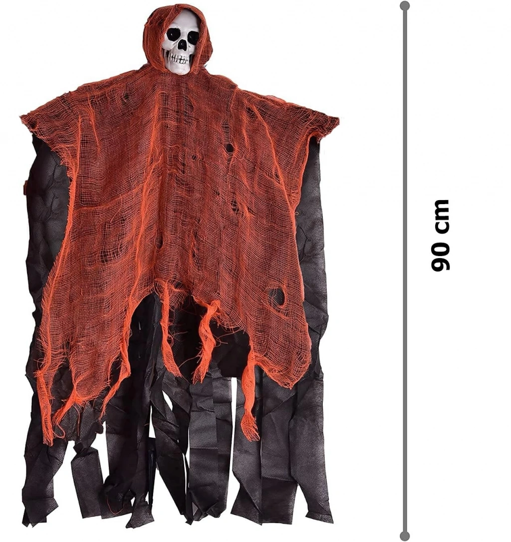 Led Işıklı Kahkaha Atan Sesli Ürpertici Kuru Kafa Korku Hayalet Saçaklı Dekor