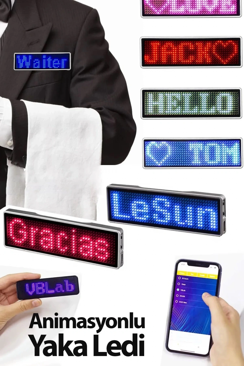 Matrix Kayan Led Yaka Rozeti Mobil Kontrollü Dijital Etiket 9×3cm