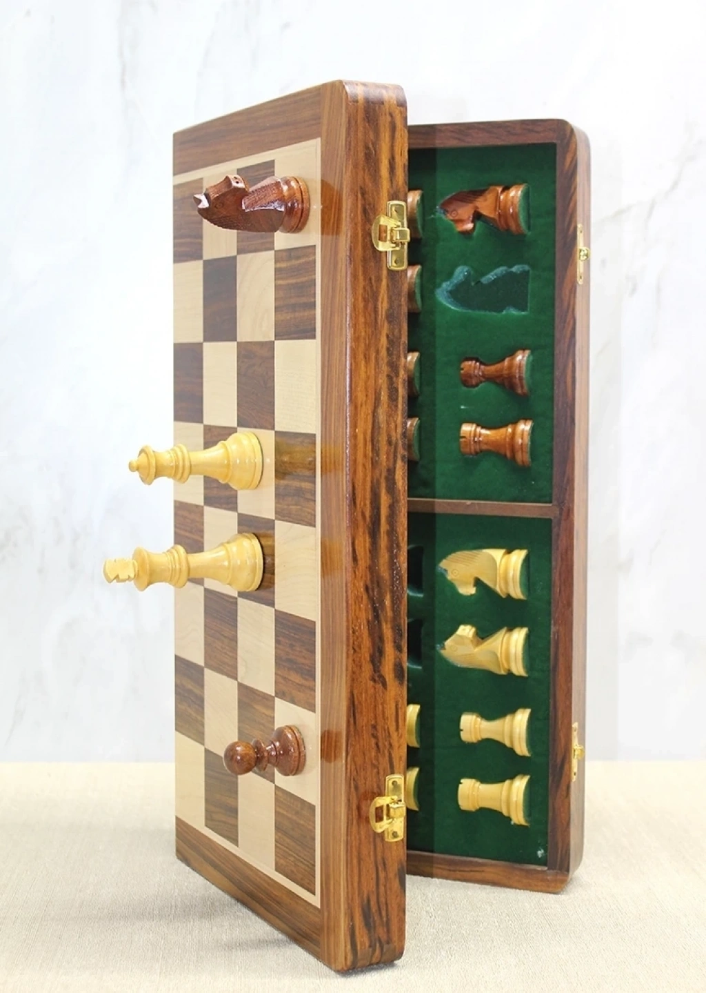 Mıknatıs Taşlı Ahşap Katlanabilir Kutulu Satranç Oyunu 40 Cm G225