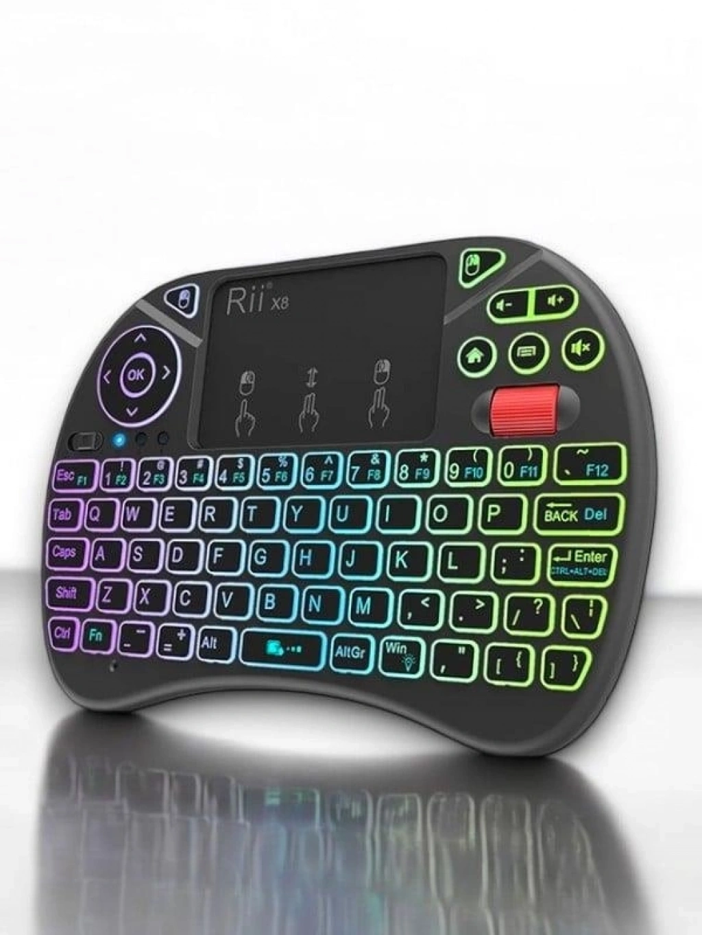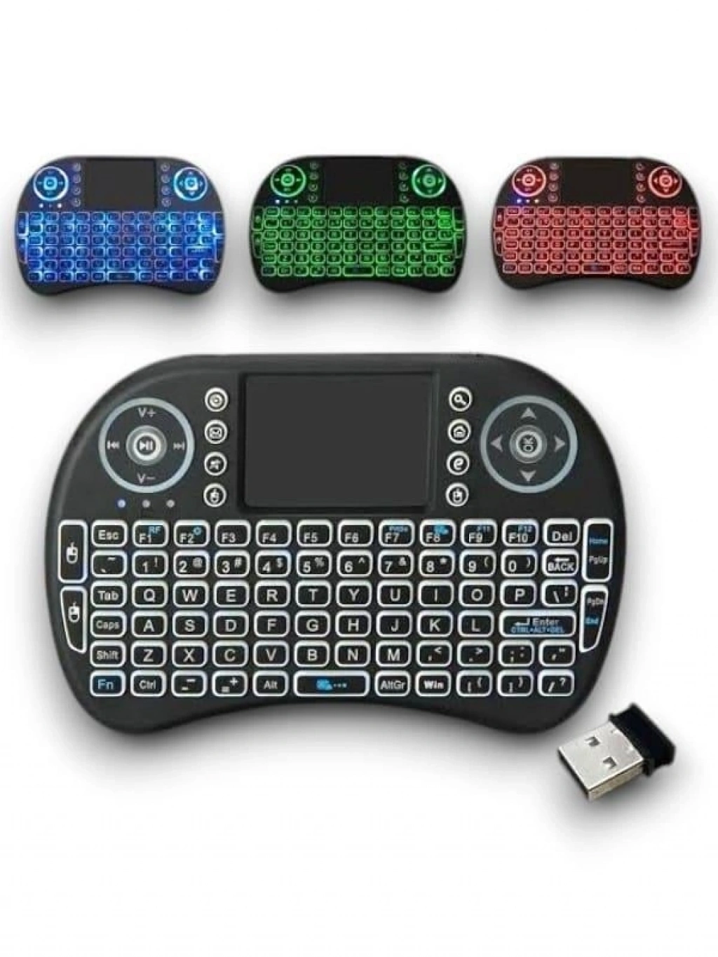 Mini Işıklı Kablosuz Klavye, Smart TV, televizyon, bilgisayar, tablet, akıllı telefon ve oyun konsolları ile uyumlu yapısı sayesinde çok yönlü bir kullanım sunar. Kompakt tasarımı ve dokunmatik mouse özelliği ile tek bir cihazda klavye ve mouse deneyimini bir araya getirir. Özellikle Smart TV ve medya kontrolü için pratik bir çözümdür.3 renkli arka aydınlatmalı tuş yapısına sahiptir. Klavye ışıklarını açmak ve renkler arasında geçiş yapmak için FN + F2 tuş kombinasyonu kullanılabilir. Işıklı yapısı sayesinde karanlık ortamlarda rahat ve konforlu kullanım sağlar. Sade ve şık siyah renk tasarımı ile her ortama uyum sağlar.2.4 GHz kablosuz bağlantı teknolojisi sayesinde tak-çalıştır özelliği sunar ve 10 metreye kadar kesintisiz kullanım imkanı tanır. USB alıcı, klavyenin pil haznesi içerisinde yer almakta olup kaybolma riskini azaltır. Kurulum gerektirmeden bilgisayar, televizyon ve diğer uyumlu cihazlara kolayca bağlanır.Dokunmatik mouse paneli sayesinde imleç kontrolü son derece hassastır ve ek bir mouse ihtiyacını ortadan kaldırır. Küçük ve hafif yapısı sayesinde çantada kolayca taşınabilir, seyahatlerde ve günlük kullanımda büyük avantaj sağlar. Kaliteli plastik malzemeden üretilmiş gövdesi dayanıklı ve uzun ömürlü kullanım sunar.Teknik ÖzelliklerVoltaj: 3.3 VÇalışma Akımı: 50 mAFrekans: 2.4 GHzKullanım Mesafesi: 10 metreye kadarAğırlık: 92 gr (pilsiz)Boyutlar: 14.7 x 9.8 x 2 cmKutu İçeriği1 adet mini kablosuz klavye1 adet USB alıcı (pil yuvası içinde)1 adet kullanım kılavuzu