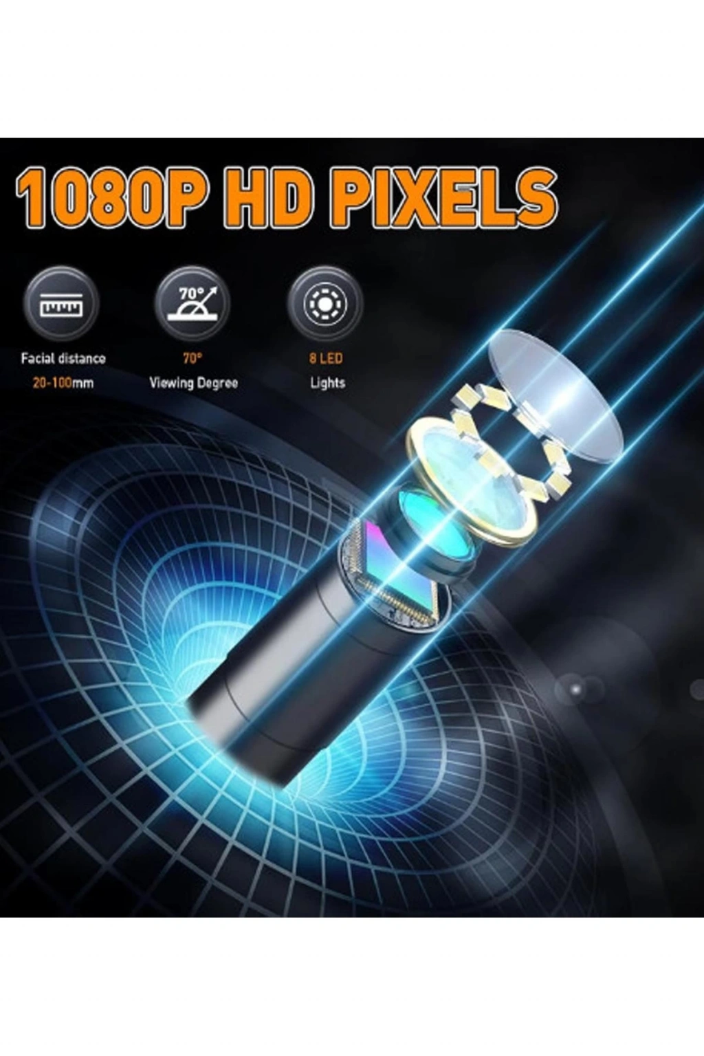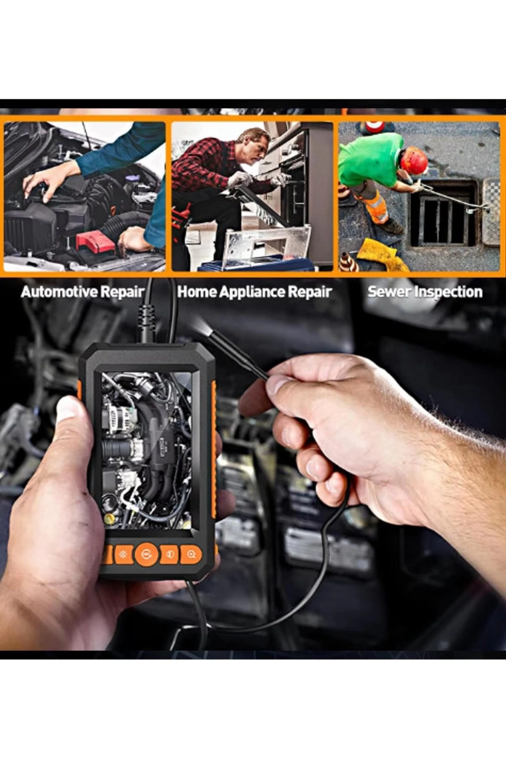 Endüstriyel endoskop, borularda veya çıplak gözle görülemeyen alanlarda inceleme için mükemmeldir. Su altı kameralarında, minyatür su geçirmez video kamerada, motorlu taşıt muayenesinde, kanalizasyon borusu muayenesinde, kayıp nesne dedektörlerinde, hat tespitinde, ev aletleri bakımında vb. Kullanılabilir.