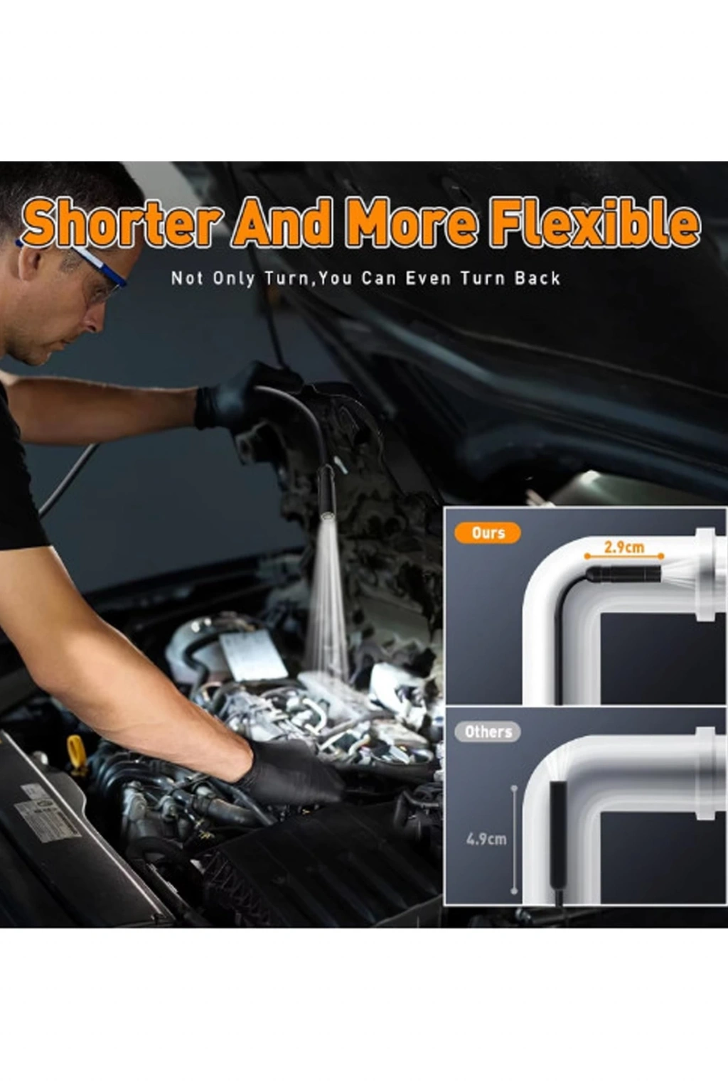 Yarı sert kablo yeterince uzun ve tutması kolay, ulaşılması zor alana girin. IP67 su geçirmez kamera, endoskop nemli ortamda çalışabilir, hatta su altına daldırabilirsiniz.