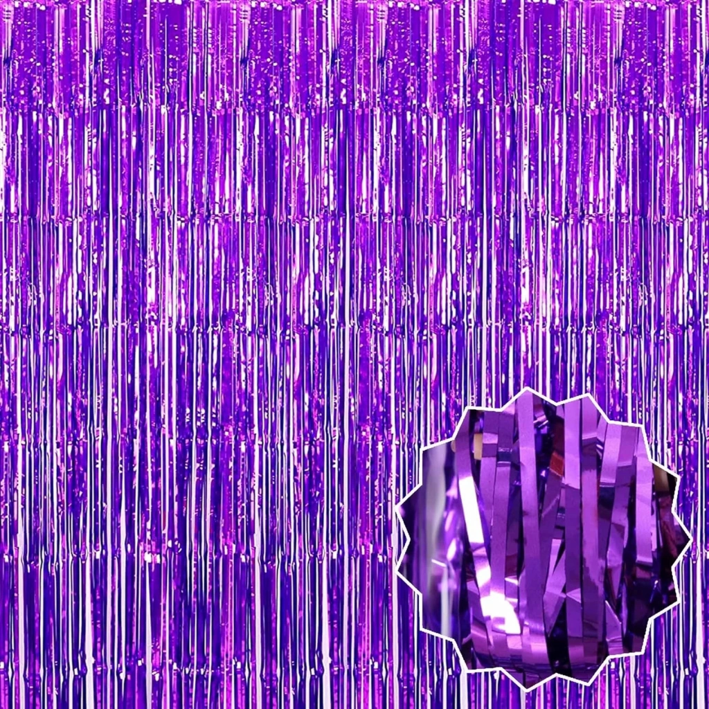 Mor renk ekstra metalize parlak saçaklı arka fon perdesi ile özel günlerinize ve kutlamalarınıza göz kamaştırıcı bir ışıltı katın İthal A kalite malzemeden üretilen bu perde, 1x2 metre boyutuyla her türlü dekorasyona uyum sağlar.