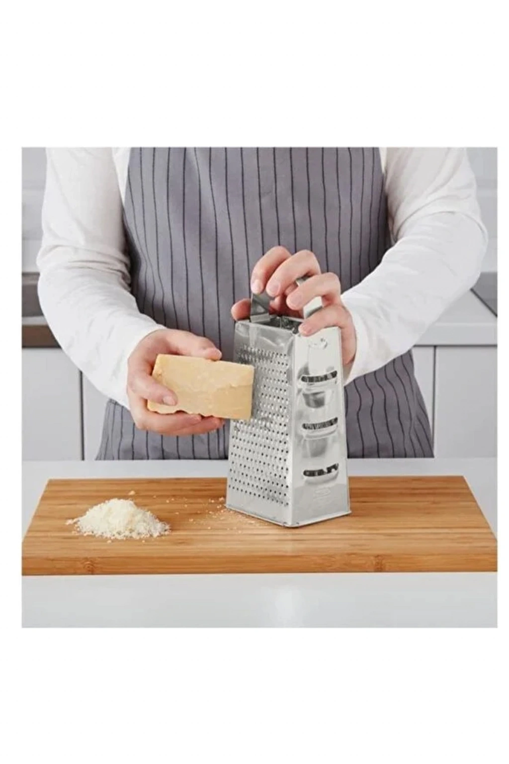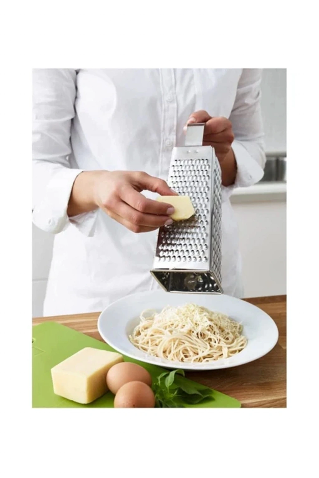Paslanmaz çelik rende Ebatlar uzunluk: 12 cm Genişlik: 10 cm Yükseklik: 20 cm Bulaşık makinesinde yıkanabilir.
