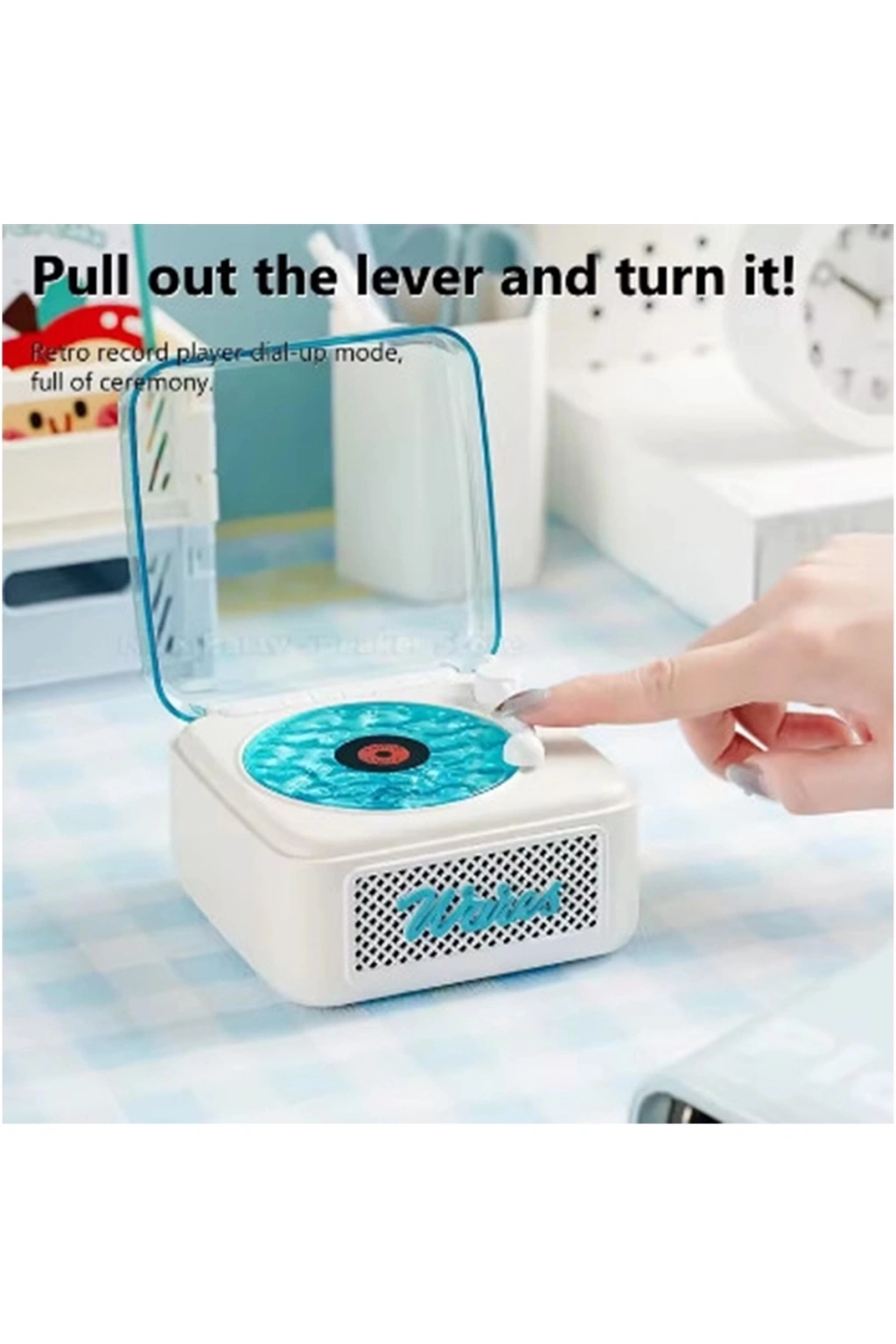 • Nostalji Mini Plak Görünümlü Radyolu Bluetooth Hoparlör 3d Ses Dalgası Retro Müzik Plak Beyaz