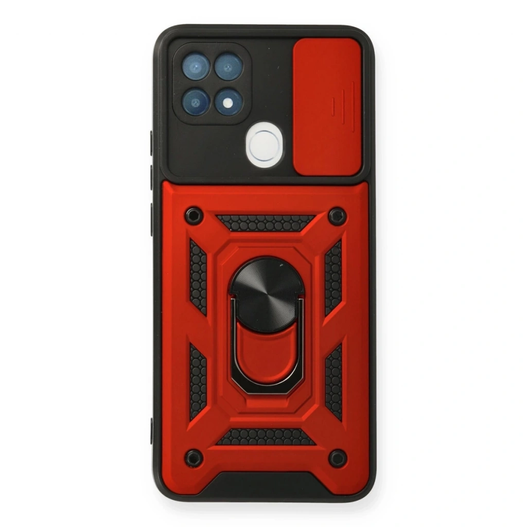 Oppo A15 Kılıf Pars Lens Yüzüklü Silikon - Kırmızı