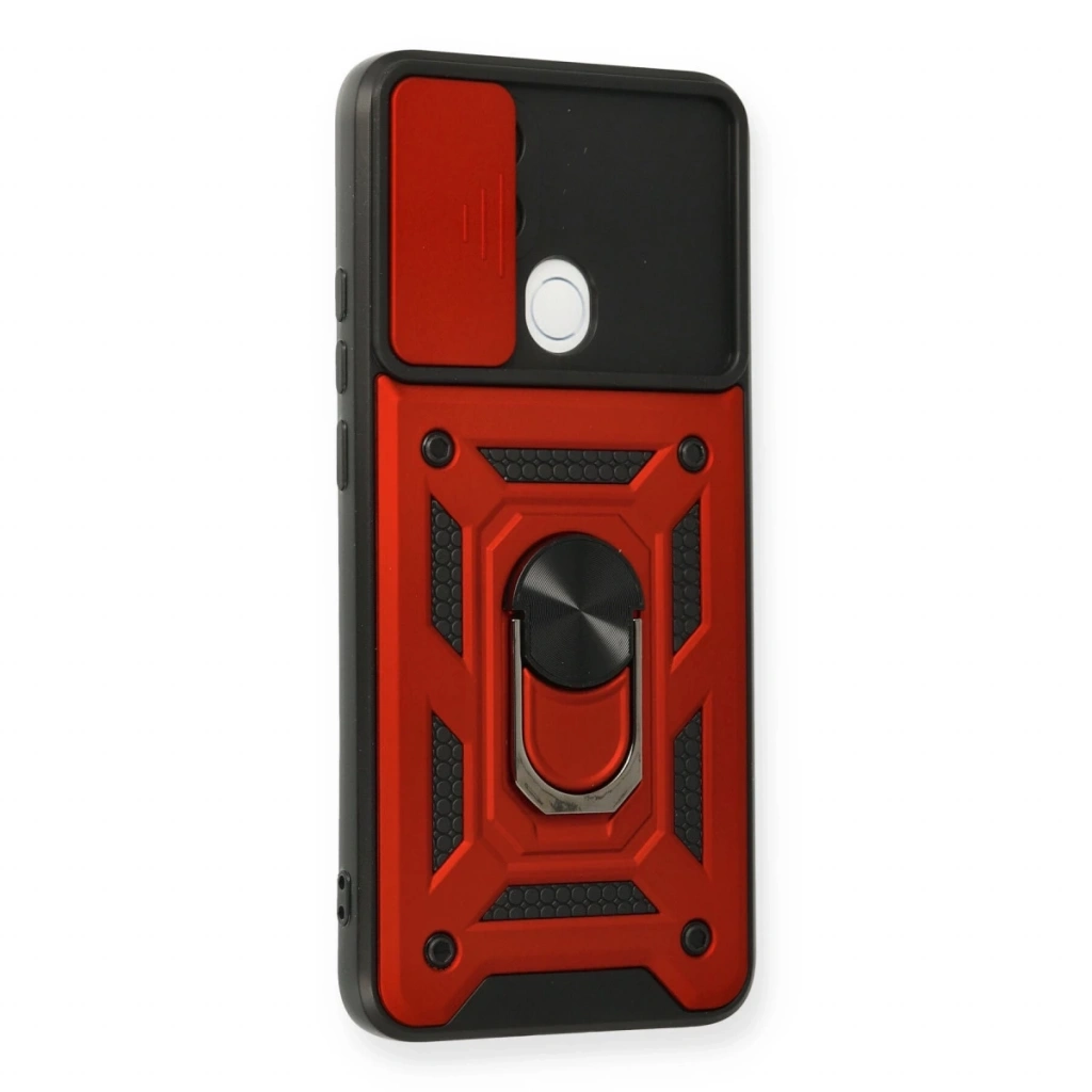 • Oppo A15 Kılıf Pars Lens Yüzüklü Silikon - Kırmızı