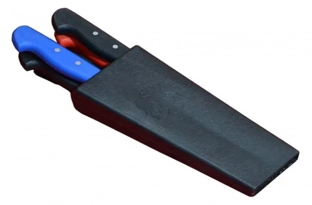 Plastik Bıçak Kütüklüğü 4'lü - Kırmızı, Plastik, Kemerlikli Bıçak Çanta bıçakları düzenli bir şekilde saklamak ve taşımak için pratik, dayanıklı ve estetik bir çözüm sunar. Hem mutfakta düzeni sağlamak hem de taşınabilirlik açısından avantaj sağlar.