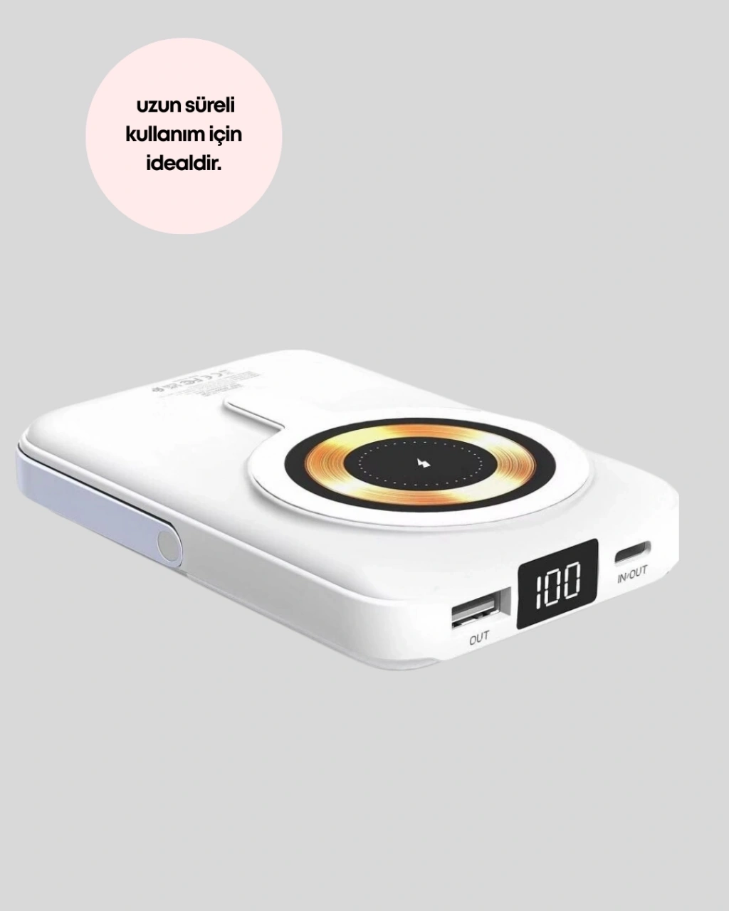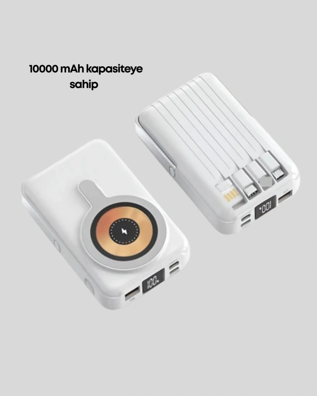 Enerjinizin her an yanınızda olmasını sağlayan bu kablosuz powerbank, kompakt tasarımı ve güçlü özellikleriyle öne çıkar. Kablosuz şarj sayesinde kablo karmaşası ortadan kalkar, hızlı şarj teknolojisi ile zaman kazanılır.LCD ekran ile pil durumu kolayca takip edilir. Type-C ve USB bağlantıları sayesinde farklı cihazlarla uyumlu çalışır. Hafif ve taşınabilir yapısı, ürünü günlük kullanım için vazgeçilmez hale getirir.Modern, pratik ve güvenilir bir şarj çözümü arayanlar için ideal bir tercihtir.