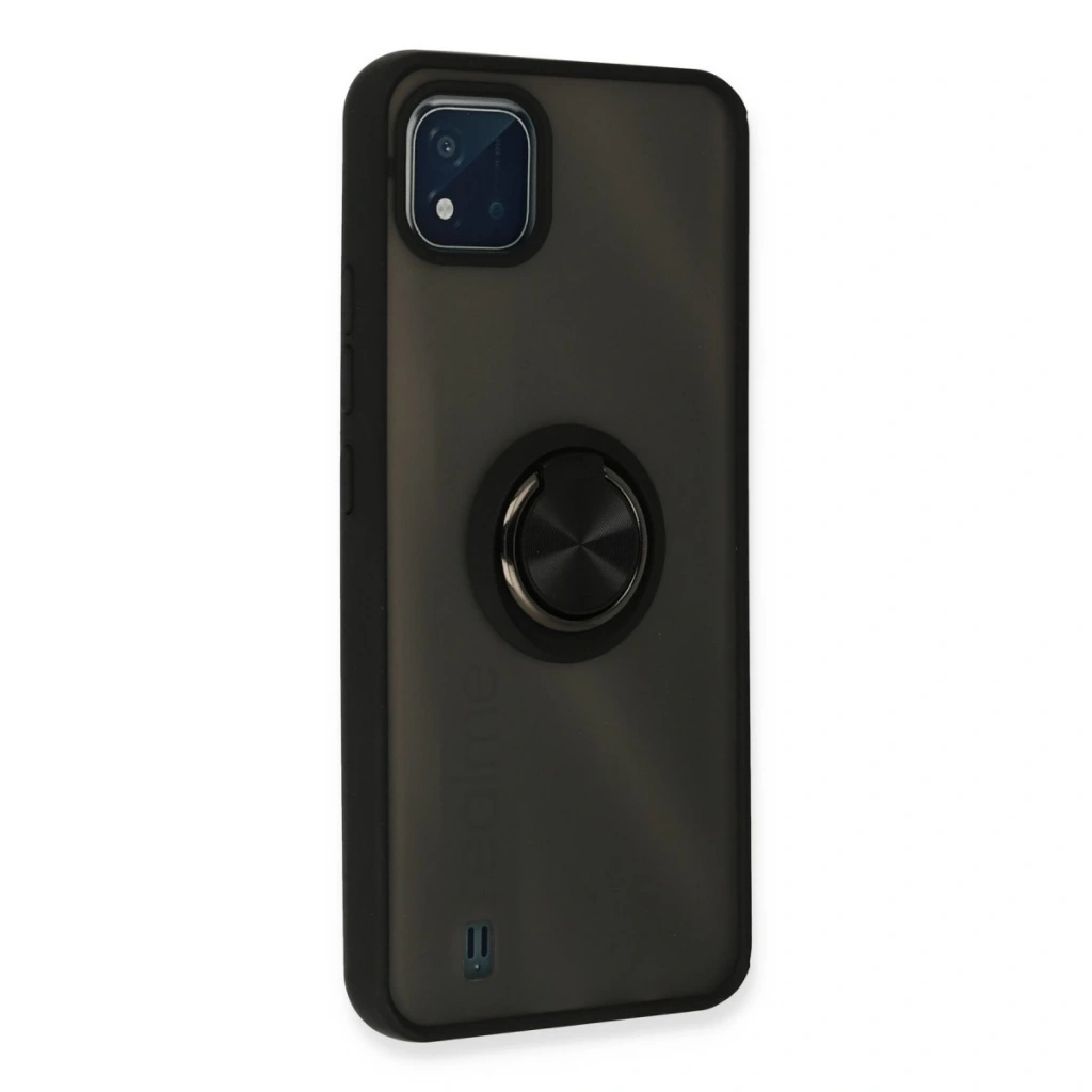 Realme C11 2021 Kılıf Montreal Yüzüklü Silikon Kapak - Siyah