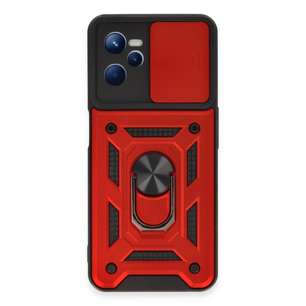 • Realme C35 Kılıf Pars Lens Yüzüklü Silikon - Kırmızı