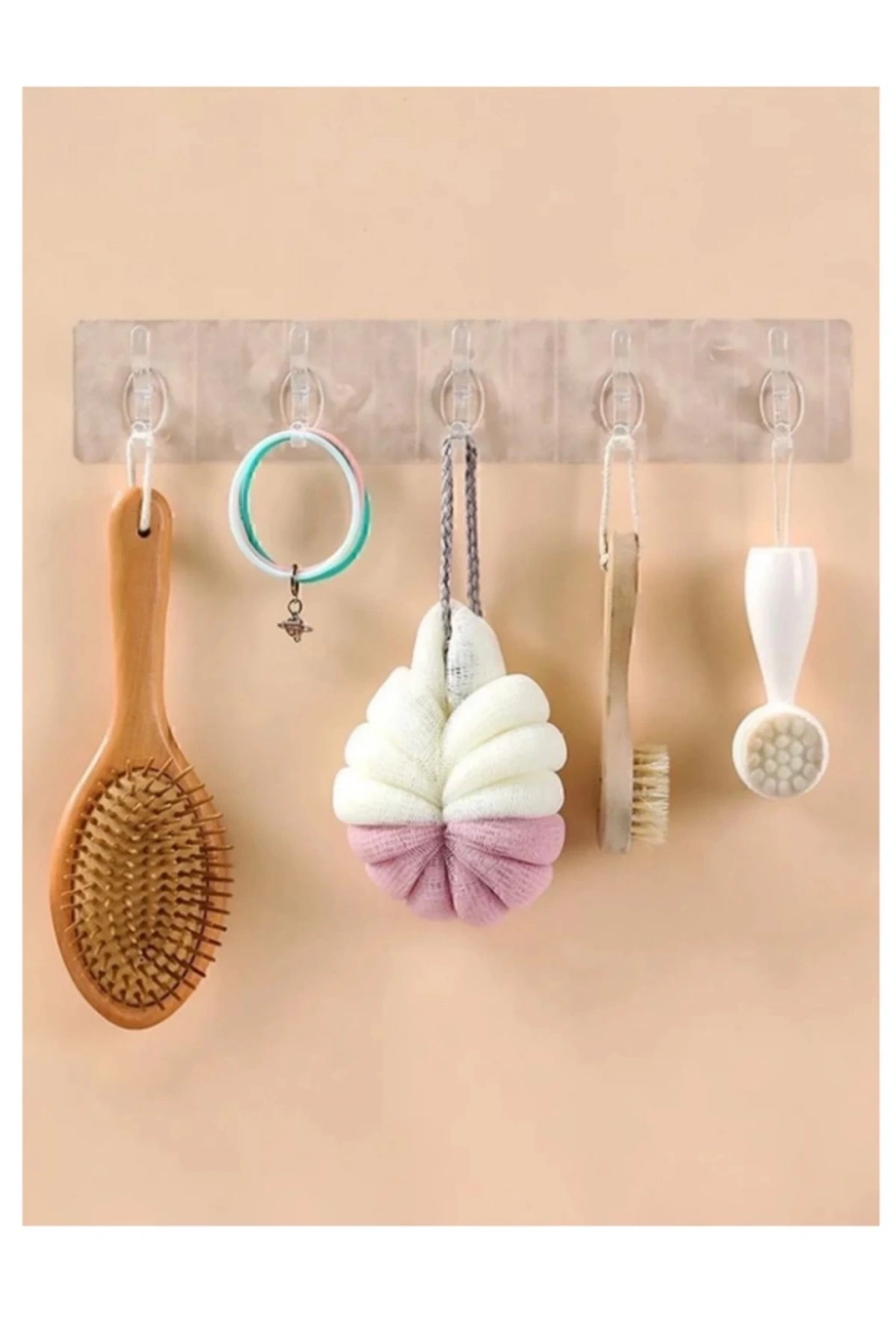 • 2 Adet Kendinden Yapışkanlı Güçlü Şeffaf 5li Askılık - Kapı Arkası Mutfak Duvar Banyo