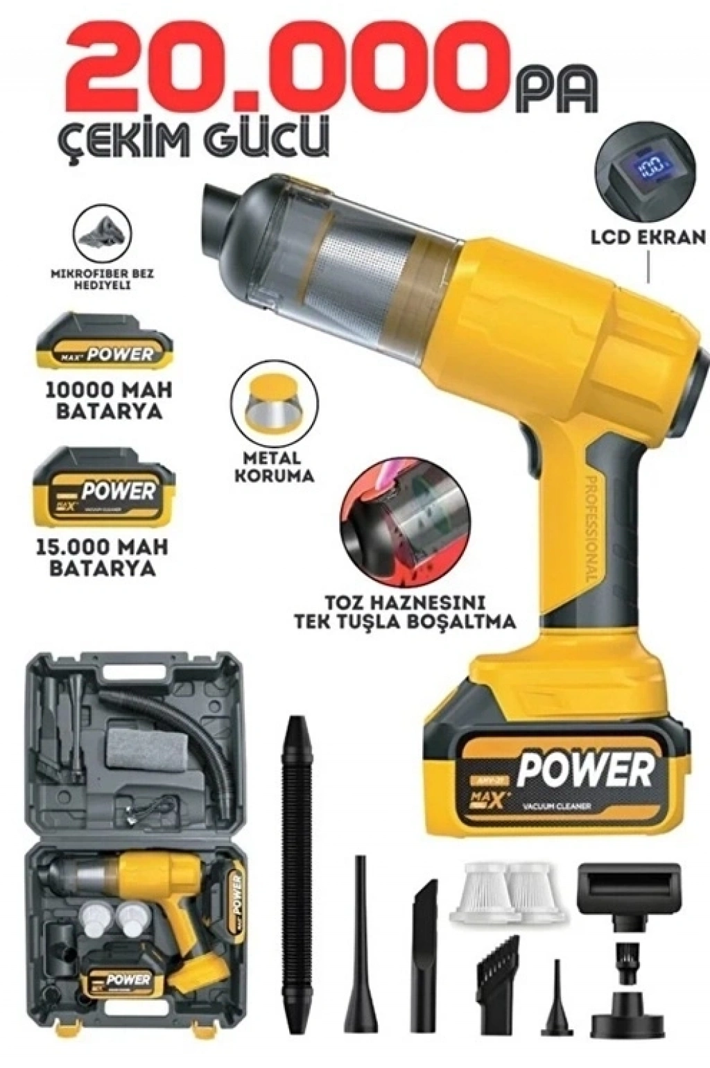 25.000mah Çift Bataryalı Auhma 20.000pa Ultra Çekim Güçlü Çantalı Araç Temizleme Süpürgesi