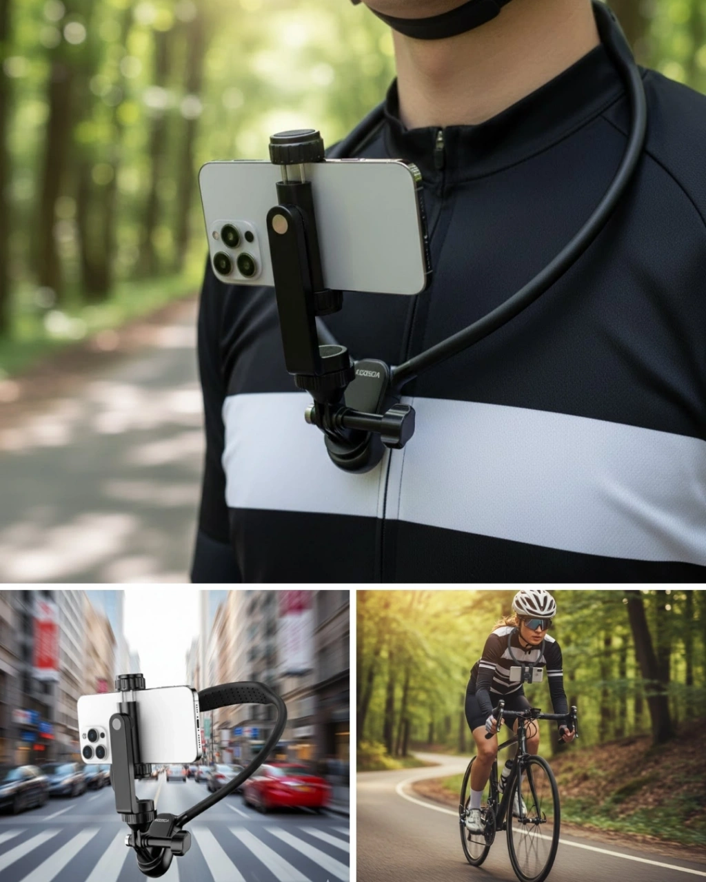 Dayanıklı malzemelerden üretilen bu telefon boyun montaj atı, hem hafif hem sağlam yapısıyla dikkat çeker. Metal alaşım gövde ve paslanmaz çelik destek mekanizması uzun süreli kullanım sunar.Birinci kişi görünümü çekimler için ideal açı sağlar. 360 derece dönebilen mekanizma ile yatay veya dikey çekim yapılabilir.Spor aktiviteleri, balık tutma, seyahat ve günlük vlog çekimleri için uygundur. Kullanımı kolay, hızlı montajlı ve güvenli yapıya sahiptir.