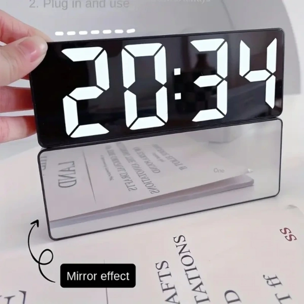 DİJİTAL SESE DUYARLI ALARMLI MASA SAATİÜrün ÖzellikleriDijital Sese Duyarlı Alarmlı Masa Saati, büyük ve net rakamlar ile saati kolaylıkla okuma imkanı sağlar. Ön yüzey kapalı olduğunda, ayna efektiyle şık bir görünüm sunar. Ekran, sesle (alkış, dokunuş gibi) aktive olabilir. Ayarlanabilir alarm özelliği, zaman yönetimini kolaylaştırır ve ihtiyaçlarınıza göre alarm süresini ayarlamanıza imkan tanır. Ayrıca, ortam sıcaklığını dijital olarak gösterir (°C/°F). Gün, ay ve yıl bilgilerini de görüntüleyebilme özelliği bulunur. Pil ile çalışır, piller dahil değildir. 14x5 cm boyutundadır. Arka panelde, zaman ayarı, mod geçişleri ve alarm için özel butonlar yer alır. Bu şık masa saati, ev, ofis, yatak odası veya çalışma alanlarında estetik bir görünüm sunar.Paket İçeriği1 Adet Dijital Sese Duyarlı Alarmlı Masa Saati