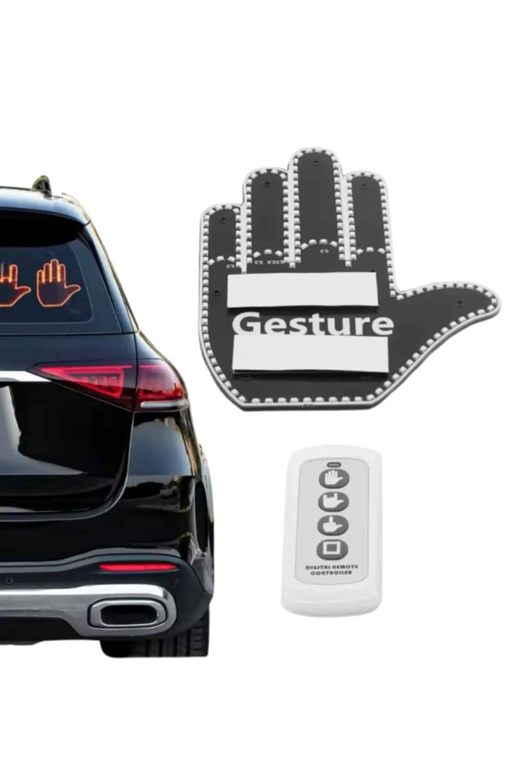 El Orta Parmak Led Kumandalı Araç İçi Reflektör Arka Cam El Simgesi