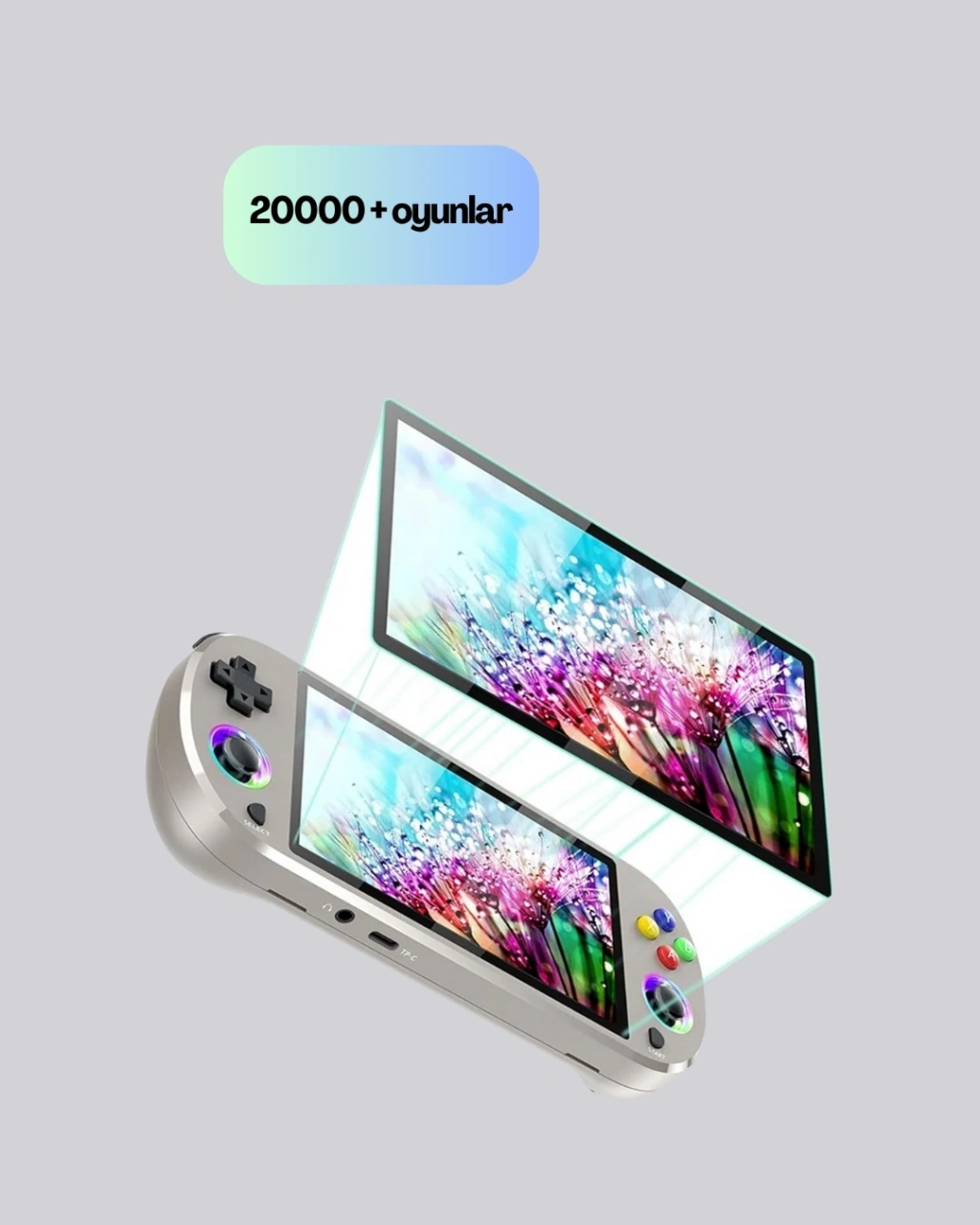 Taşınabilir yapısı, güçlü bataryası ve çok yönlü bağlantı seçenekleriyle bu oyun konsolu, hem çocuklar hem yetişkinler için uygundur. IPS ekranı ile canlı ve net görüntüler sunarken, tam görüş açısı sayesinde farklı açılardan da yüksek kaliteyi korur.Cihazda yer alan 3000 mAh lityum pil, 6 saatlik kesintisiz kullanım sunar. C2C tipi hızlı şarj girişi, cihazı kısa sürede tekrar kullanıma hazır hale getirir.Joystick kısmındaki RGB ışık halkası, cihazın atmosferini değiştirecek kadar etkileyicidir. Farklı modlar arasında geçiş yapabilir, ışık efektlerini kişiselleştirebilirsiniz.HD çıkış, Wi-Fi eşleşme, 2.4G kontrolcü bağlantısı ve titreşimli motor desteği sayesinde cihaz sadece bireysel kullanım değil; grup oyunları ve büyük ekran deneyimleri için de idealdir.Taşınabilir boyutu ve ergonomik yapısı sayesinde cihazı her yere kolayca götürebilirsiniz. Gerek evde gerek dış mekânda rahatça kullanılabilir. Hem eğlenceli hem de fonksiyonel bir cihazdır.
