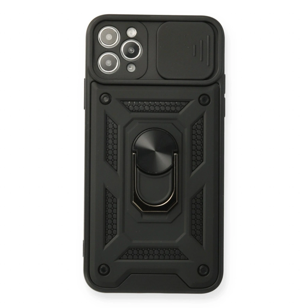 • İphone 11 Pro Max Kılıf Pars Lens Yüzüklü Silikon - Siyah