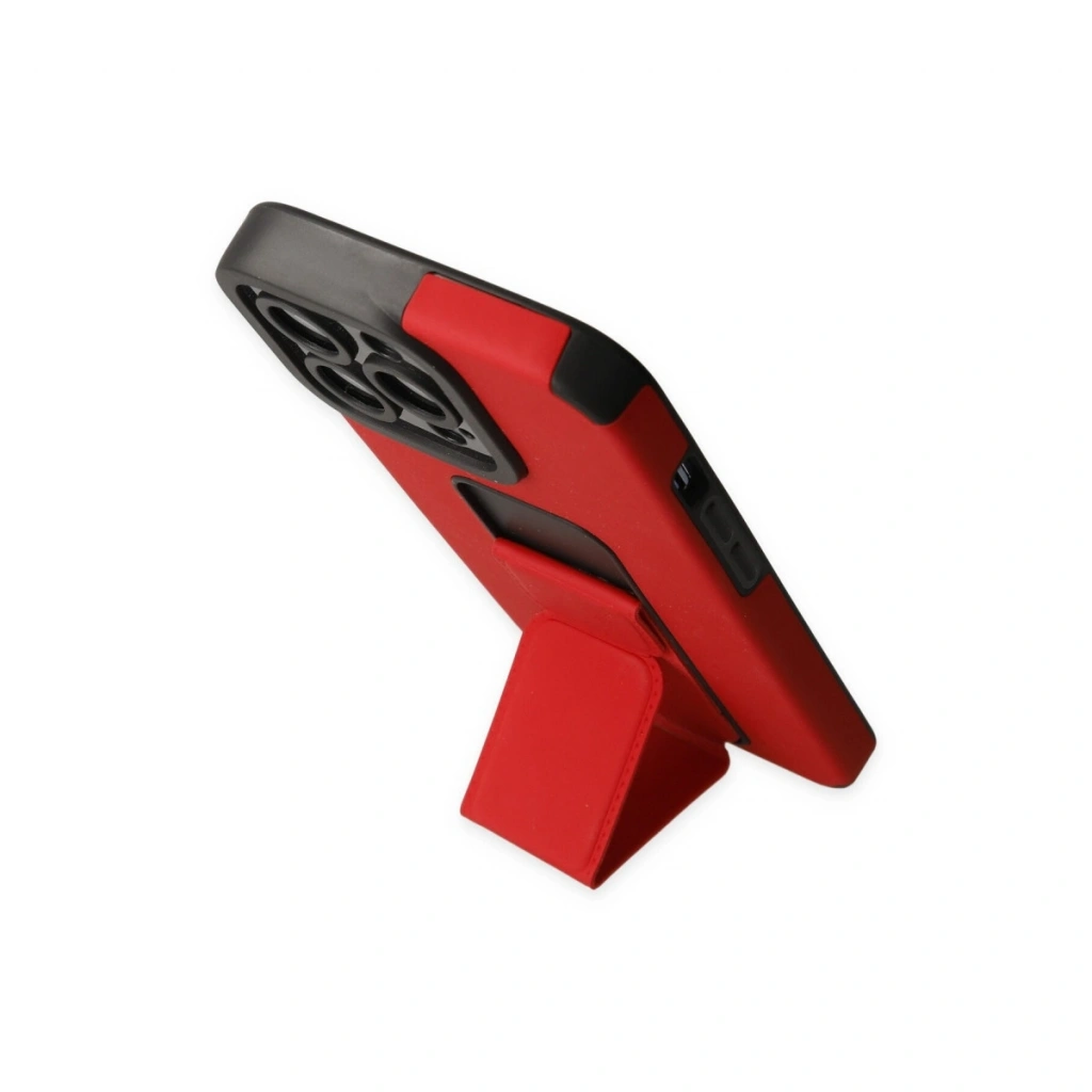 • İphone 13 Pro Max Kılıf Mega Standlı Silikon - Kırmızı