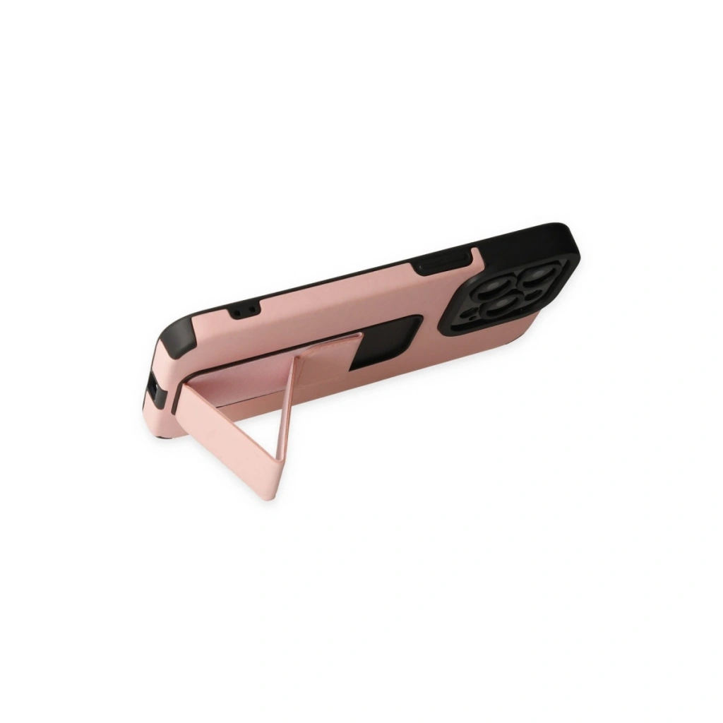 • İphone 13 Pro Max Kılıf Mega Standlı Silikon - Pudra