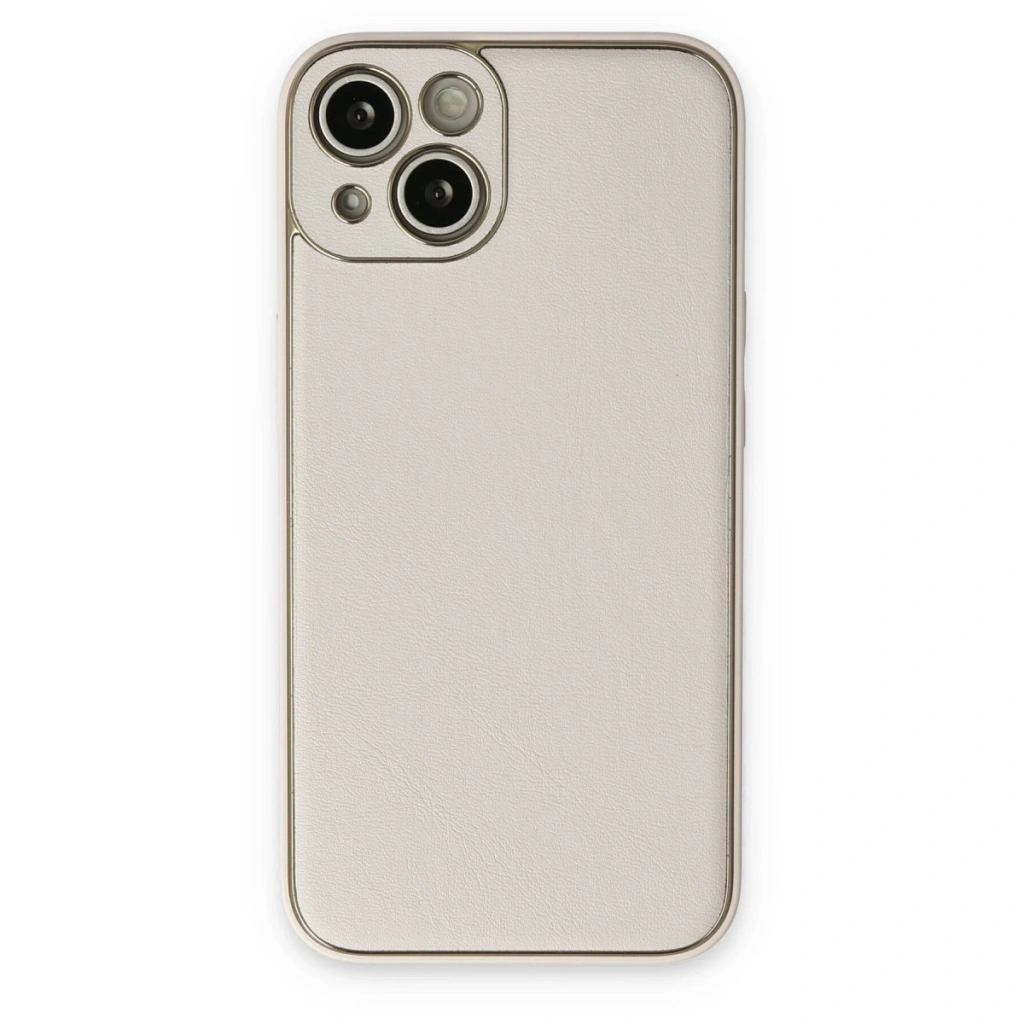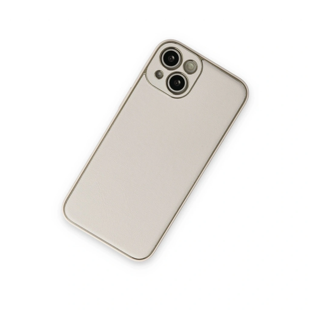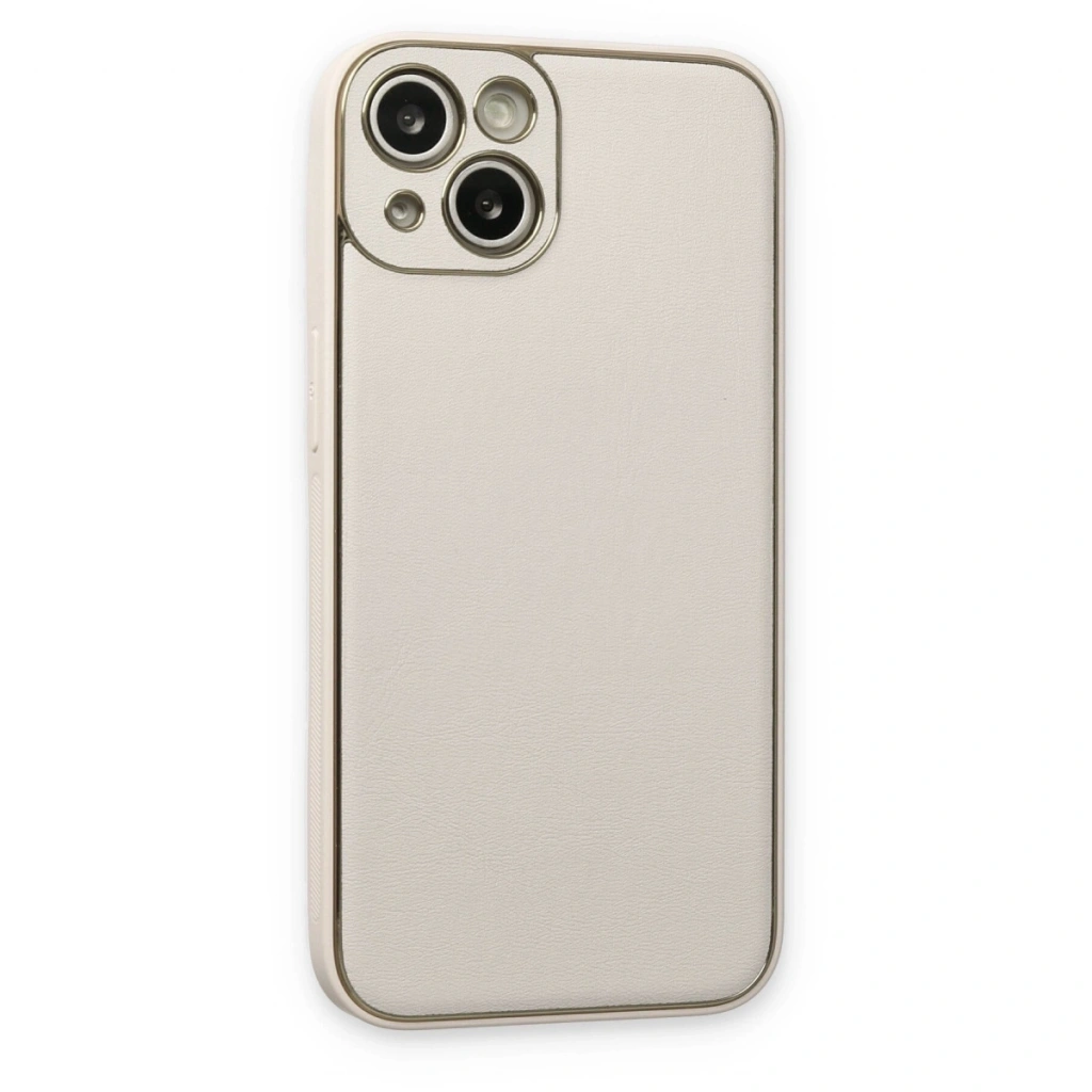 İphone 14 Plus Kılıf Coco Deri Silikon Kapak - Beyaz
