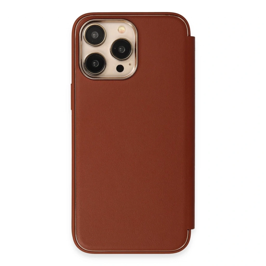 İphone 14 Pro Kılıf Dolpin Kapaklı - Kahverengi