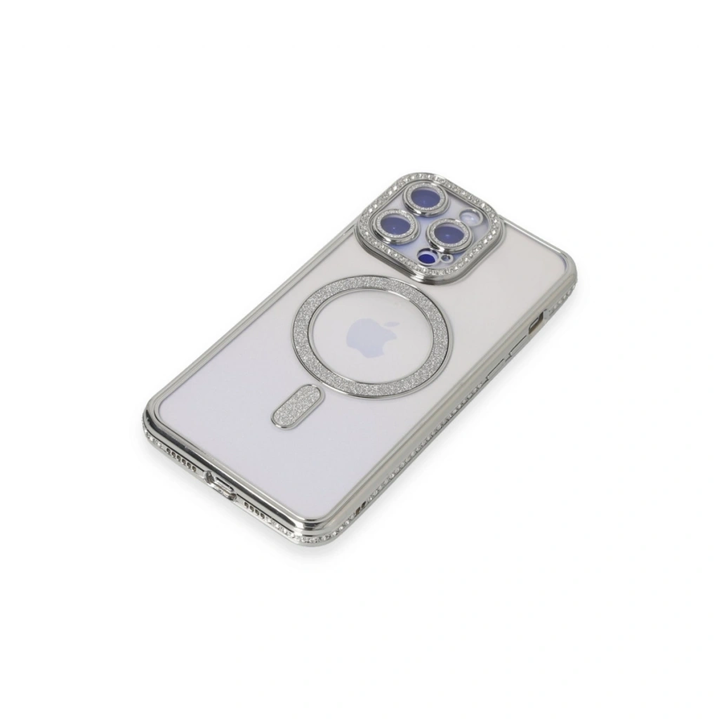 • İphone 15 Pro Kılıf Joke Simli Magneticsafe Kılıf - Gümüş