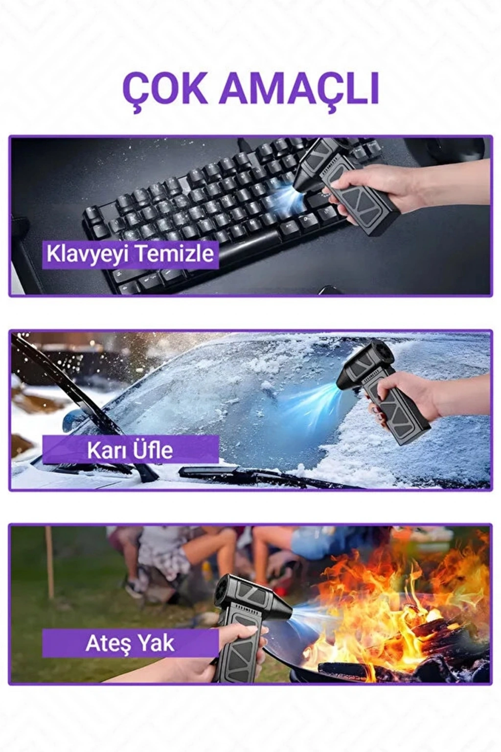 Geleneksel temizlik yöntemlerine veda edin Mini Turbo Fan, avuç içine sığan devasa gücüyle temizlikten kamp ateşine, bilgisayar bakımından araç kurulamaya kadar her alanda ezber bozuyor. 130.000 RPM fırçasız motoru ile bu cihaz, sadece bir üfleyici değil, cebinizdeki profesyonel hava kompresörüdür.