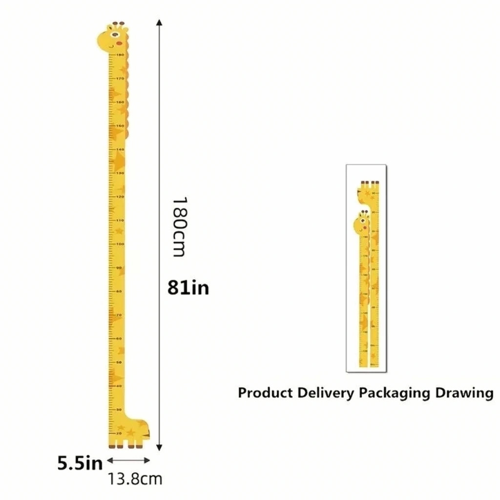 • Odasına yapıştırın düzenli olarak boyunu ölçün, mutlu olsun Arkasında bulunan çift taraflı bantlar sayesinde duvarınıza zarar vermeden kolayca yapıştırın.